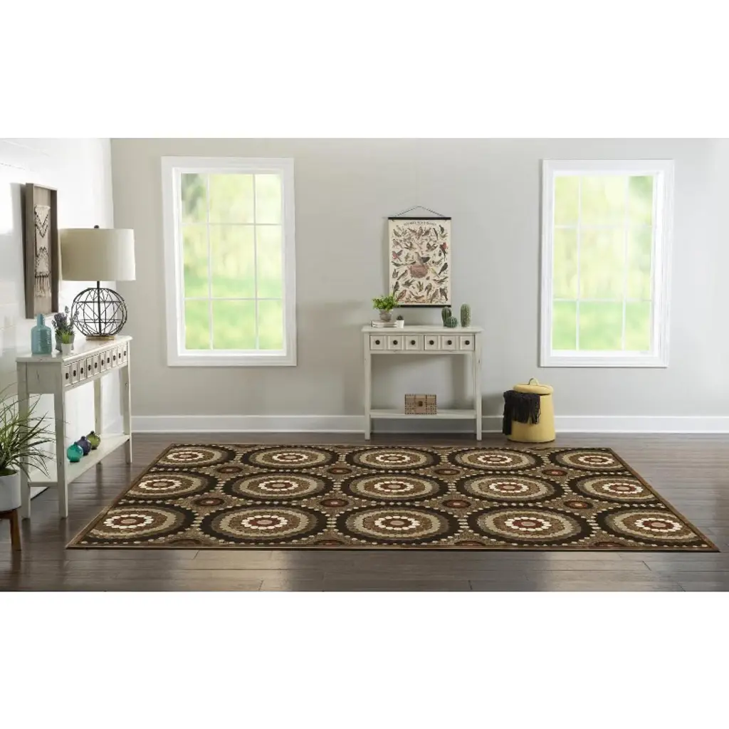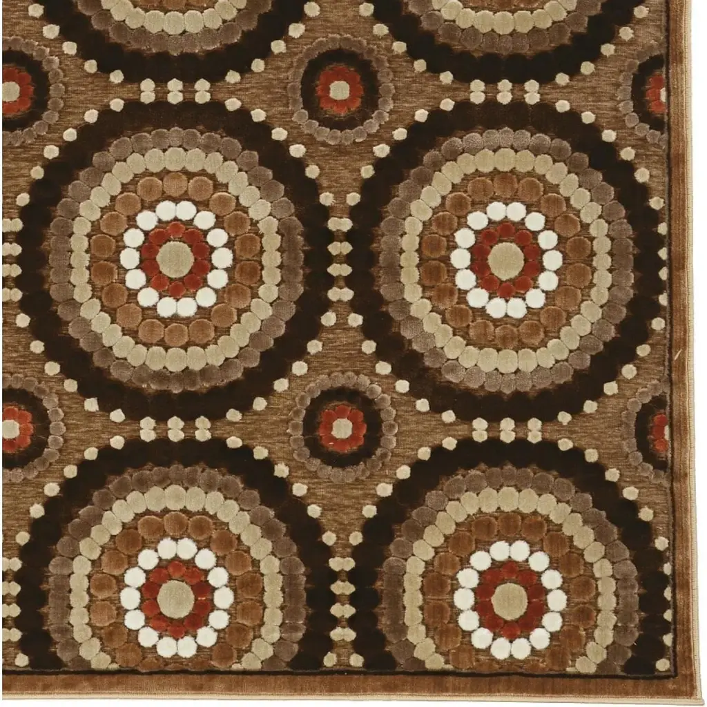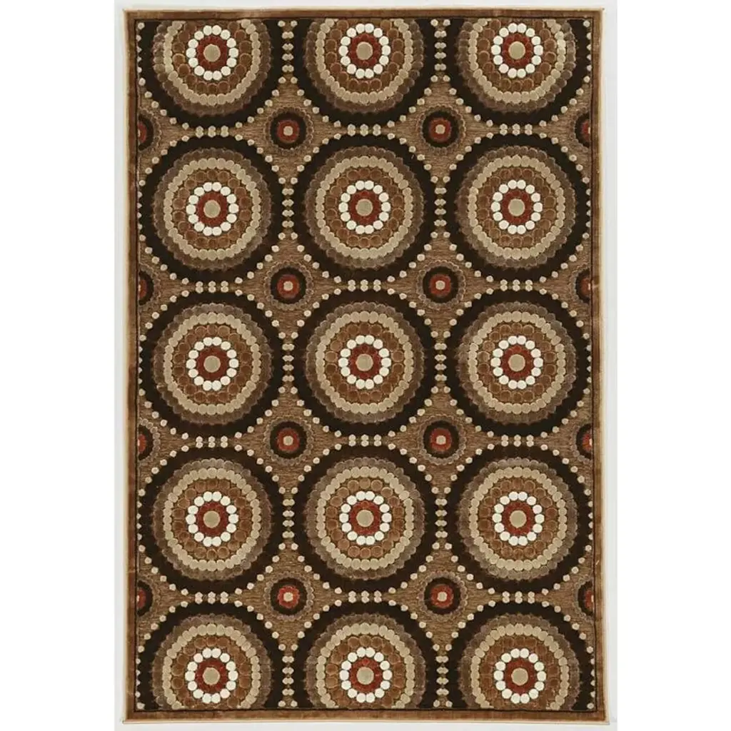Take home a rug that enlivens a room with its fantastic design, one that combines a flat chenille background with raised construction including layered colors and a 3D pattern. The vivid pattern is an arrangement of cylinders inside cylinders that produces a delightful overall look. Here you have one example from an outstanding, lovely, easy care 100% Chenille Polyester rug collection. Transitional styling ensures this impressive rug brings a touch of class to just about any room, even as it softens footfalls and quiets footsteps.