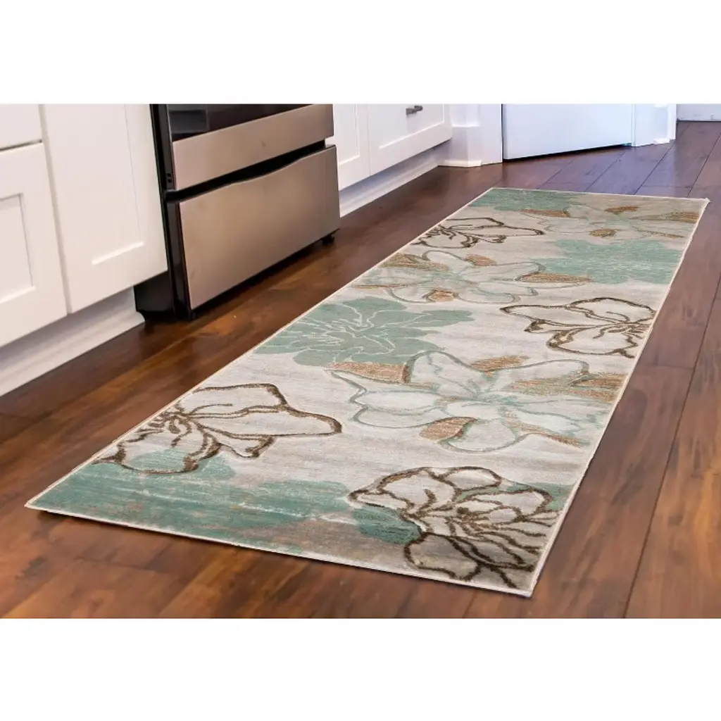 Homestock Milan Eleanor Ivory & Turquoise 2'6" X 8', Power Loomed, Transitional