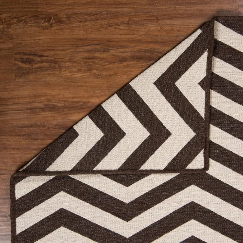 Homestock Salonika Reversible Chevron Brown 2'6" X 4'6", Woven And Hand Finished, Transitional