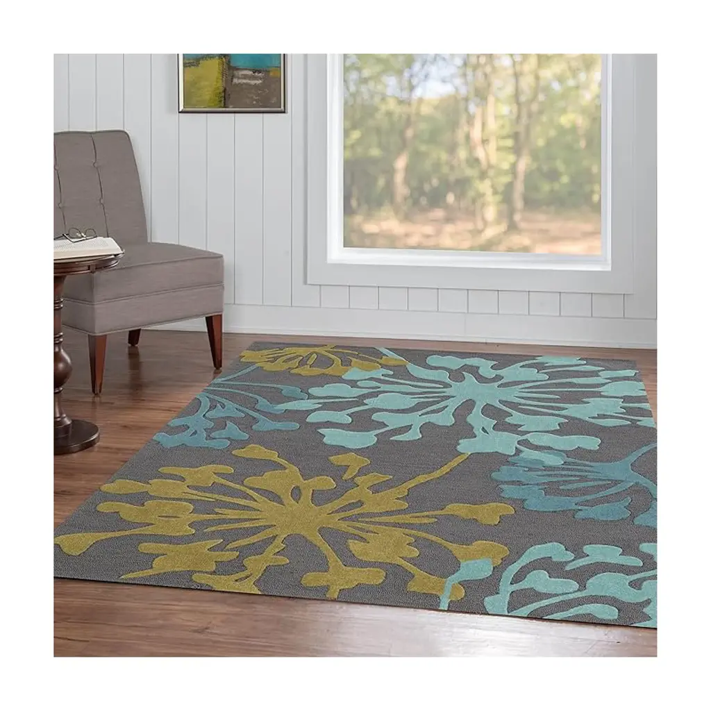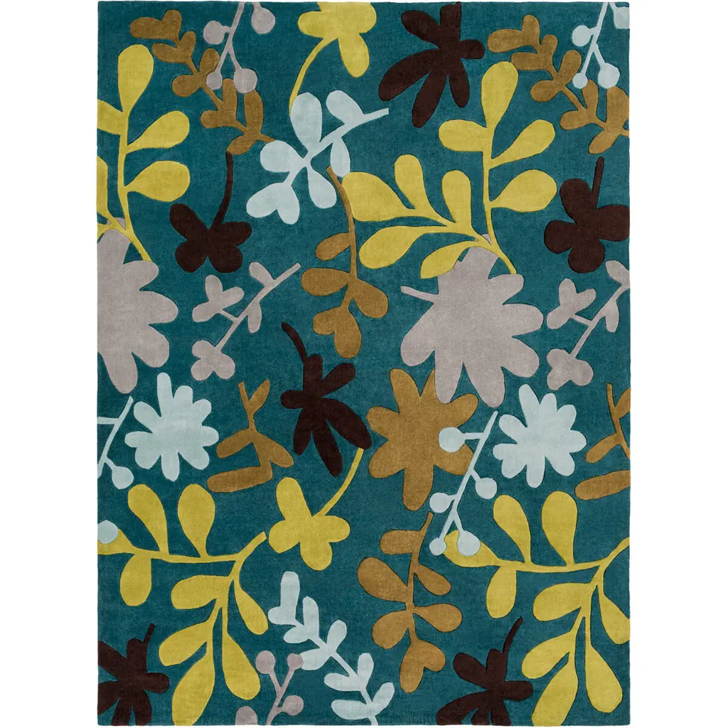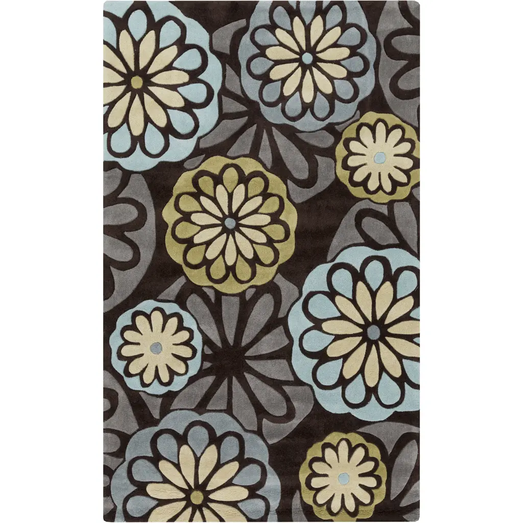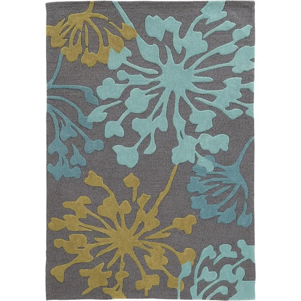 Homestock Trio Dandelion Grey & Aqua 5X7, Transitional, Hand Tufted