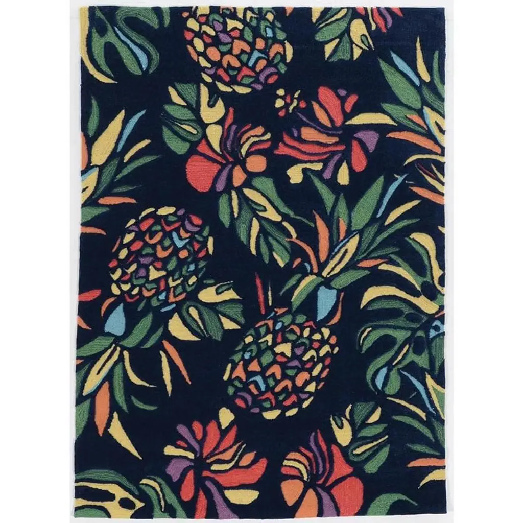 Homestock Trio Pineapple Navy & Multi 5X7, Transitional, Hand Tufted