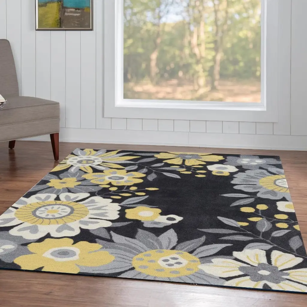Homestock Trio Wildflower Grey & Yellow 5X7, Transitional, Hand Tufted