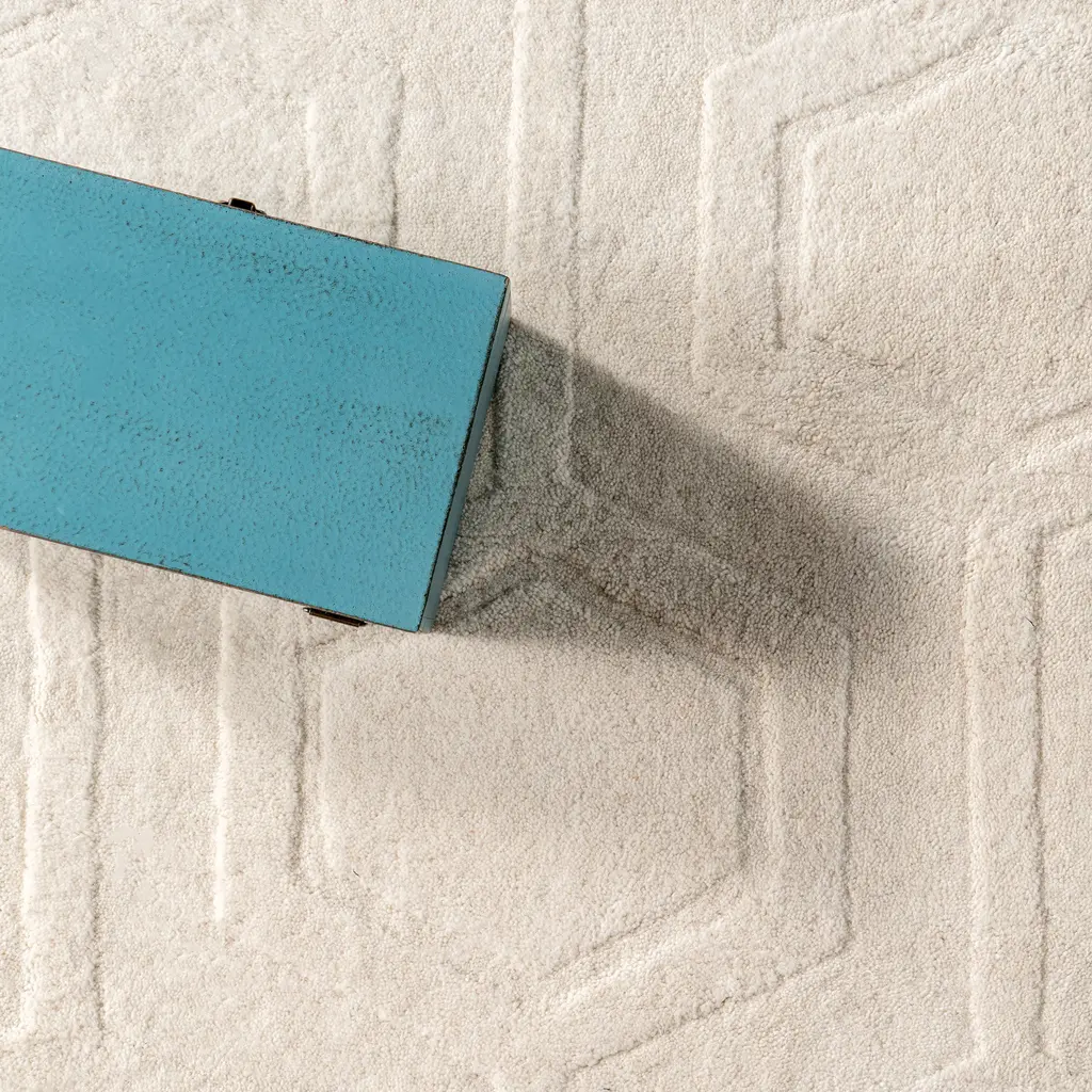 Bring in style and contemporary look to your decor with this hand-tufted wool rug. It has a beautiful embossed hexagon patterned, which enhances the depth of any room it's placed in. The soft wool fibers create a cozy texture under foot while promising durability. With our wide assortment of colors and sizes, make the most of your time at home with our pet-friendly and easy to clean area rugs.