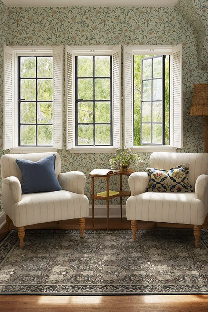 Step back in time with the Morris & Co. Honeysuckle & Tulip Dark Wood Rug. Originally inspired by William Morris's 1876 watercolor paintings of Honeysuckle, this mirrored pattern of elegant floral and foliage motifs stands the test of time. Textured ivories, blue-greens, and browns intertwine with ease, honoring the original design's sophistication and grandeur. Water-resistant, stain-resistant, and machine-washable. Rug colors may vary slightly according to your device and the lighting in your space.