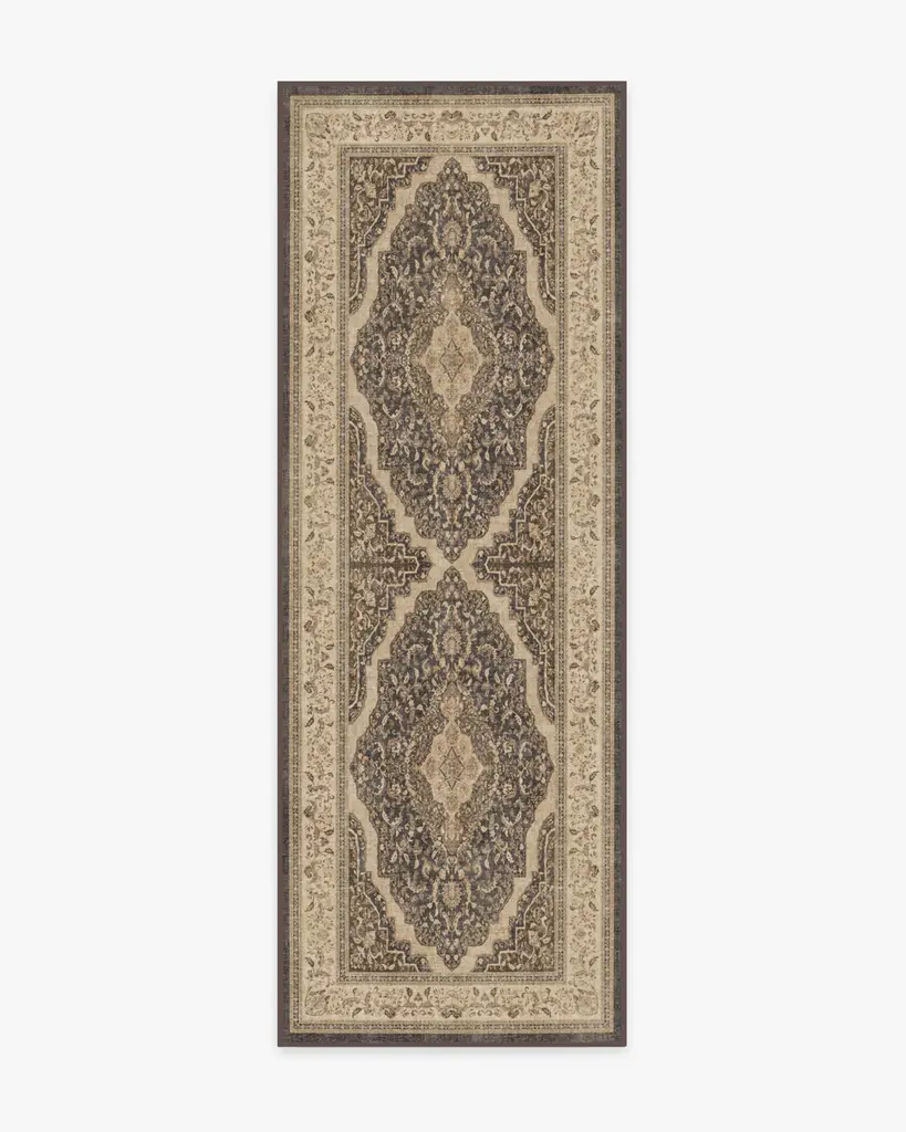 Step back in time with the Morris & Co. Honeysuckle & Tulip Dark Wood Rug. Originally inspired by William Morris's 1876 watercolor paintings of Honeysuckle, this mirrored pattern of elegant floral and foliage motifs stands the test of time. Textured ivories, blue-greens, and browns intertwine with ease, honoring the original design's sophistication and grandeur. Water-resistant, stain-resistant, and machine-washable. Rug colors may vary slightly according to your device and the lighting in your space.