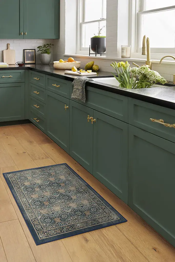 Step back in time with the Morris & Co. Honeysuckle & Tulip Indigo Rug. Originally inspired by William Morris's 1876 watercolor paintings of Honeysuckle, this mirrored pattern of elegant floral and foliage motifs stands the test of time. Fresh blues, subtle terracottas, and hopeful creams intertwine with ease, honoring the original design's sophistication and grandeur. Water-resistant, stain-resistant, and machine-washable. Rug colors may vary slightly according to your device and the lighting in your space.