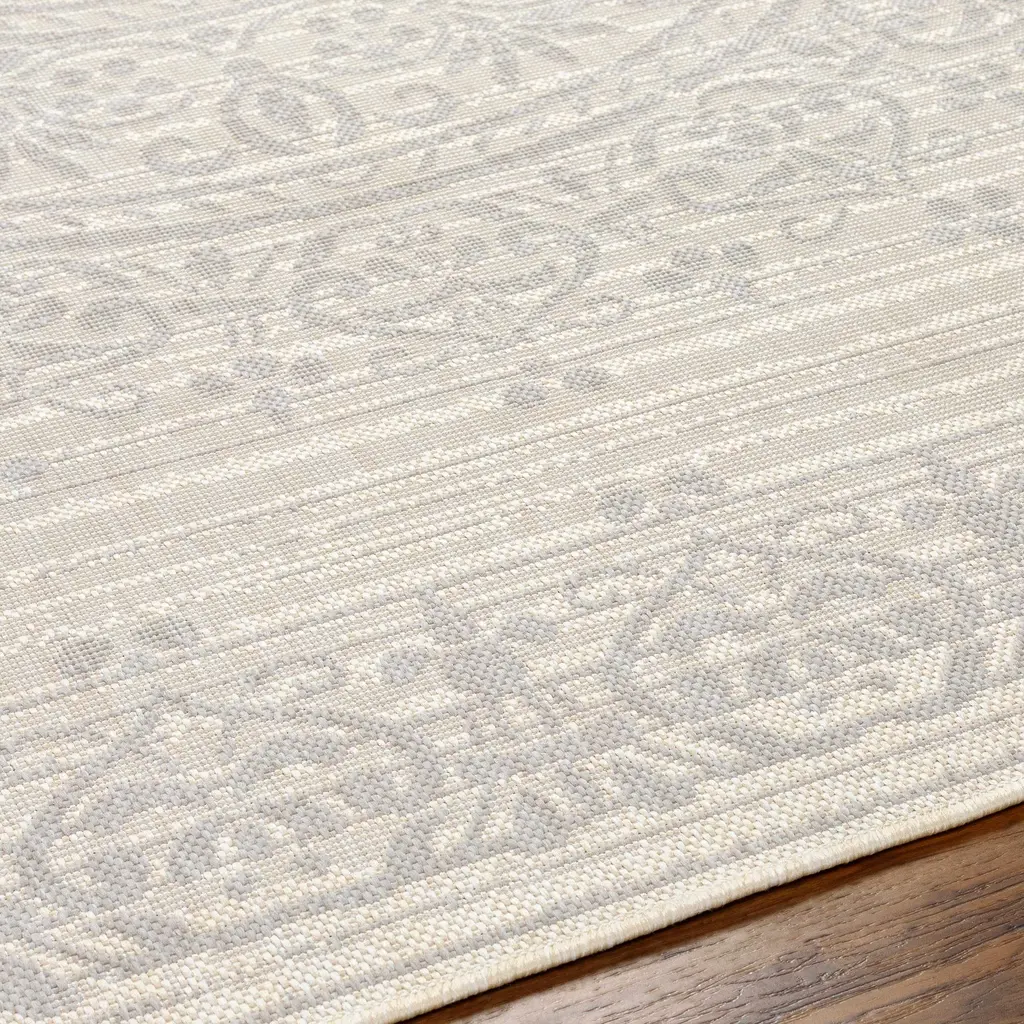 Collection: Honza Colors: Beige, Medium Gray, Gray Construction: Machine Woven Material: 100% Polypropylene Pile: No Pile Styles: Traditional Backing: Outdoor Latex Outdoor Safe: Yes Made In: Turkey Thickness: 0.39" Price Range: $$$$$ (Most Affordable)