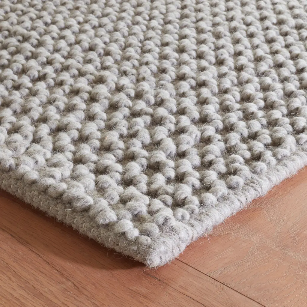 The Hooper Handwoven Wool Rug is made of pebbled wool loops that add softness and texture, making it ideal for low-traffic spaces like bedrooms and living rooms.