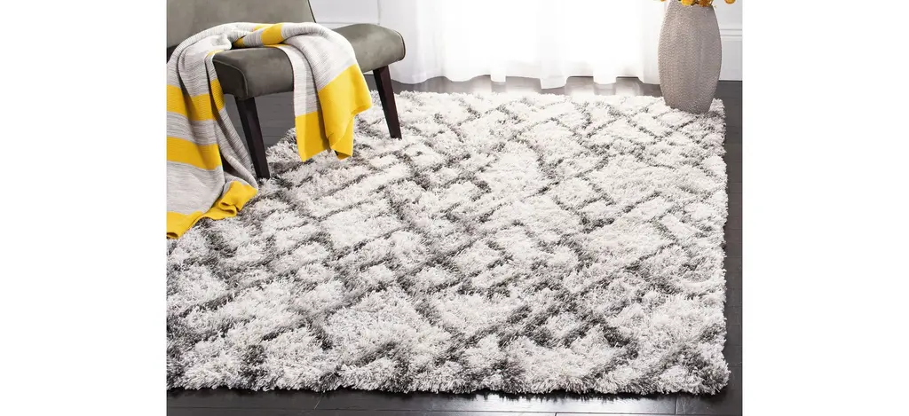 Fashionable Horizon area rug with shag style works in any room of the home, from the bedroom, living room, dining room, nursery, or home office. Refined power-loomed construction ensures an easy-care and virtually non-shedding rug. Made from enhanced premium polypropylene fibers providing both comfort and durability.