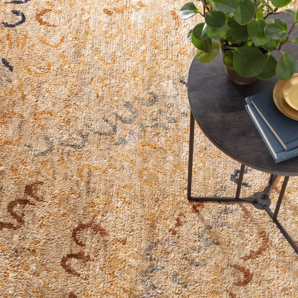 Redolent of fabrics designed by the Bloomsbury Group's Duncan Grant, horseshoe shaped squiggles add a fun and joyful element to these hand knotted rugs. Richly textured and plush underfoot, the sheared natural jute is silky with a satisfying sheen. Its unique mottled appearance showcases beautifully the vegetal shades and has excellent durability as well as being sustainable, biodegradable and renewable. One of the timeless creations from the collaboration between Annie and Kit Kemp, co-owner and Creative Director for Firmdale Hotels, united by their passion for colorful and carefree design, redefining contemporary Arts and Crafts for everyday life.
