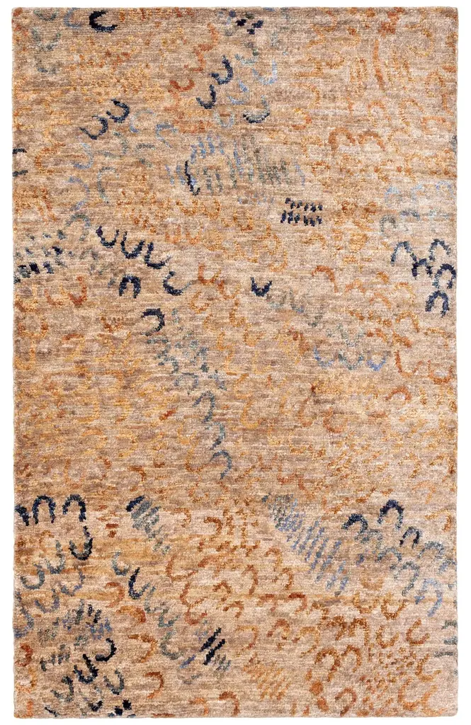 Redolent of fabrics designed by the Bloomsbury Group's Duncan Grant, horseshoe shaped squiggles add a fun and joyful element to these hand knotted rugs. Richly textured and plush underfoot, the sheared natural jute is silky with a satisfying sheen. Its unique mottled appearance showcases beautifully the vegetal shades and has excellent durability as well as being sustainable, biodegradable and renewable. One of the timeless creations from the collaboration between Annie and Kit Kemp, co-owner and Creative Director for Firmdale Hotels, united by their passion for colorful and carefree design, redefining contemporary Arts and Crafts for everyday life.