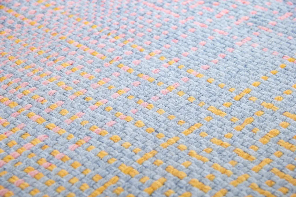 A 5'x8' rug contains about 460-500 recycled plastic bottles. But how could yarn this soft come from plastic? First, recycled bottles are sorted by color before being washed, crushed, and chopped into flakes. The flakes are melted into small pellets, then re-melted and extruded into fibers that are bonded together in longer strands before finally being spun into yarn.