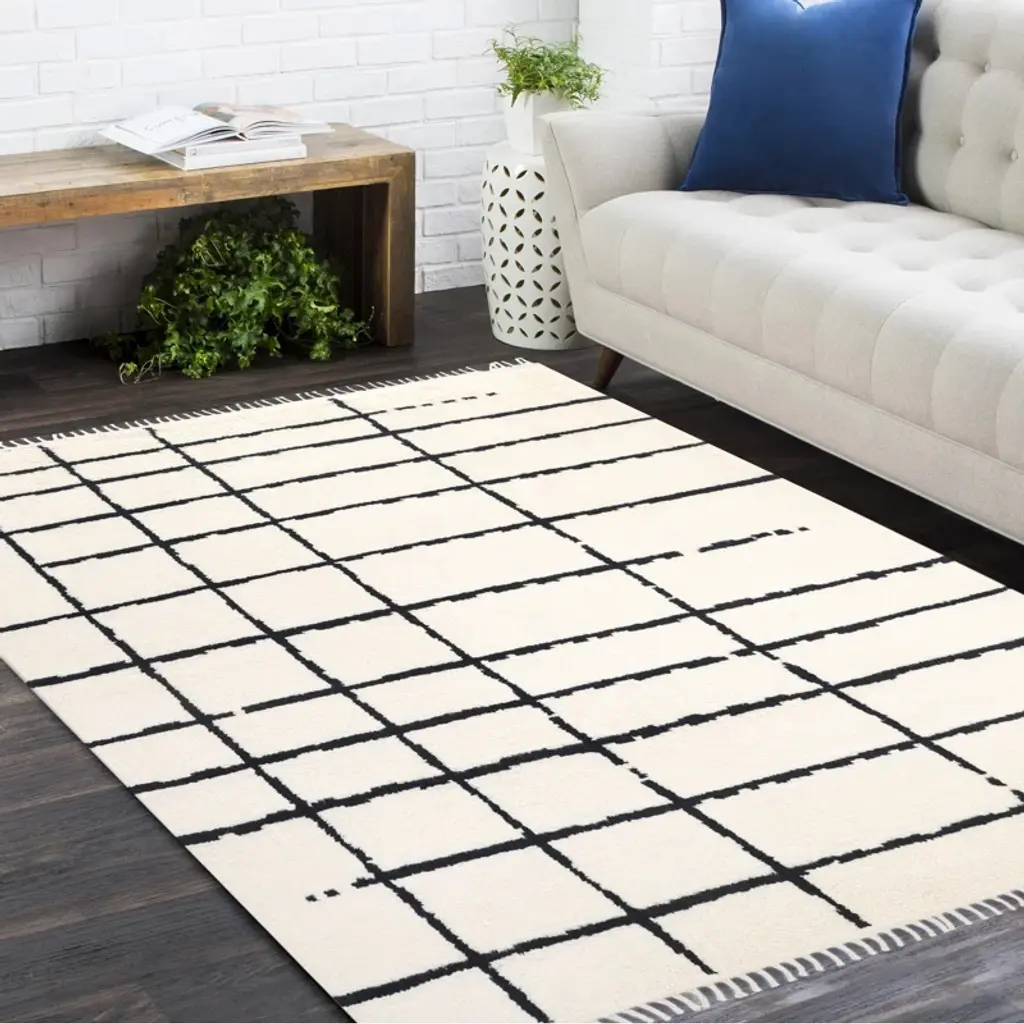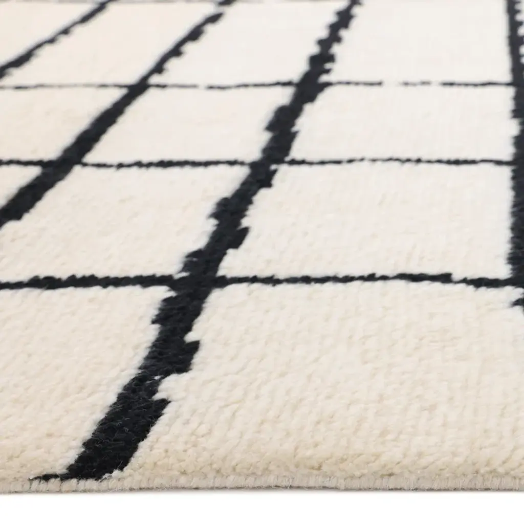Hoxton Rectangle Geometric Hand-Knotted Cotton/wool Area Rug In Ivory/black