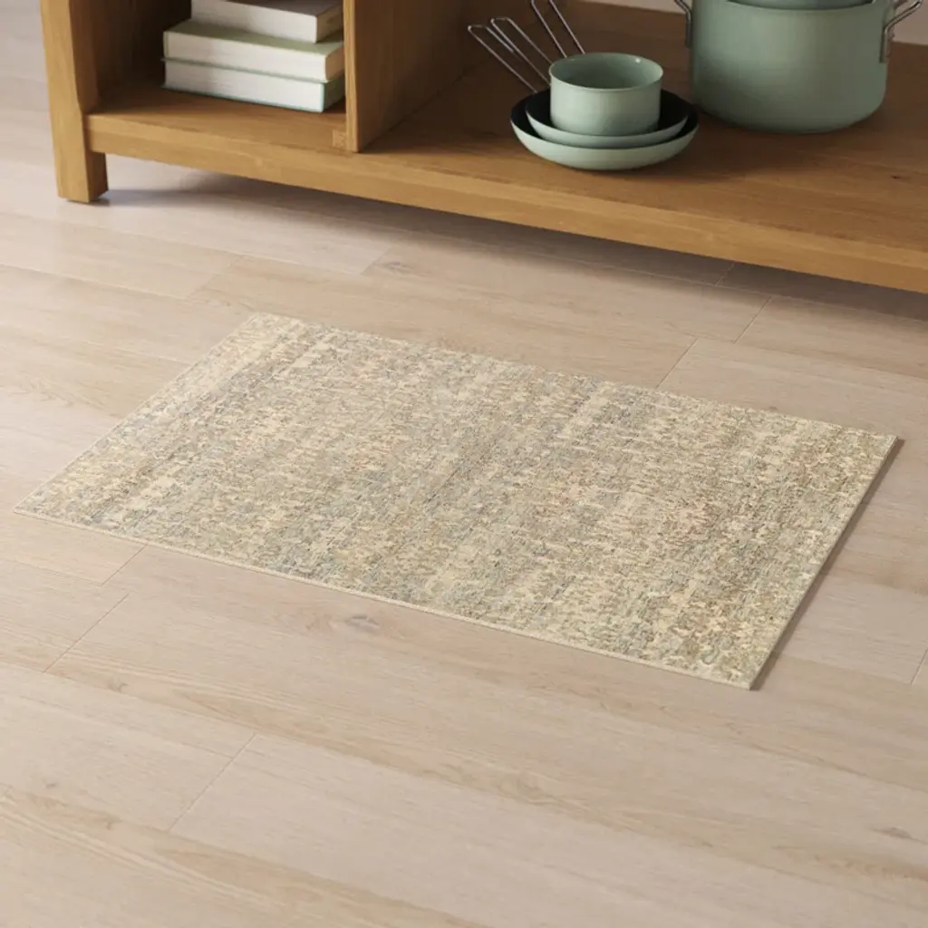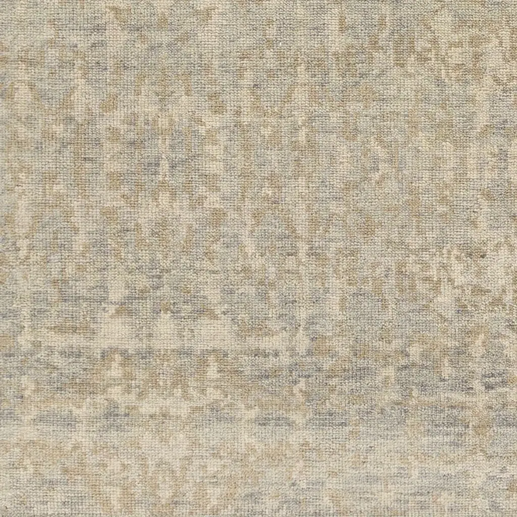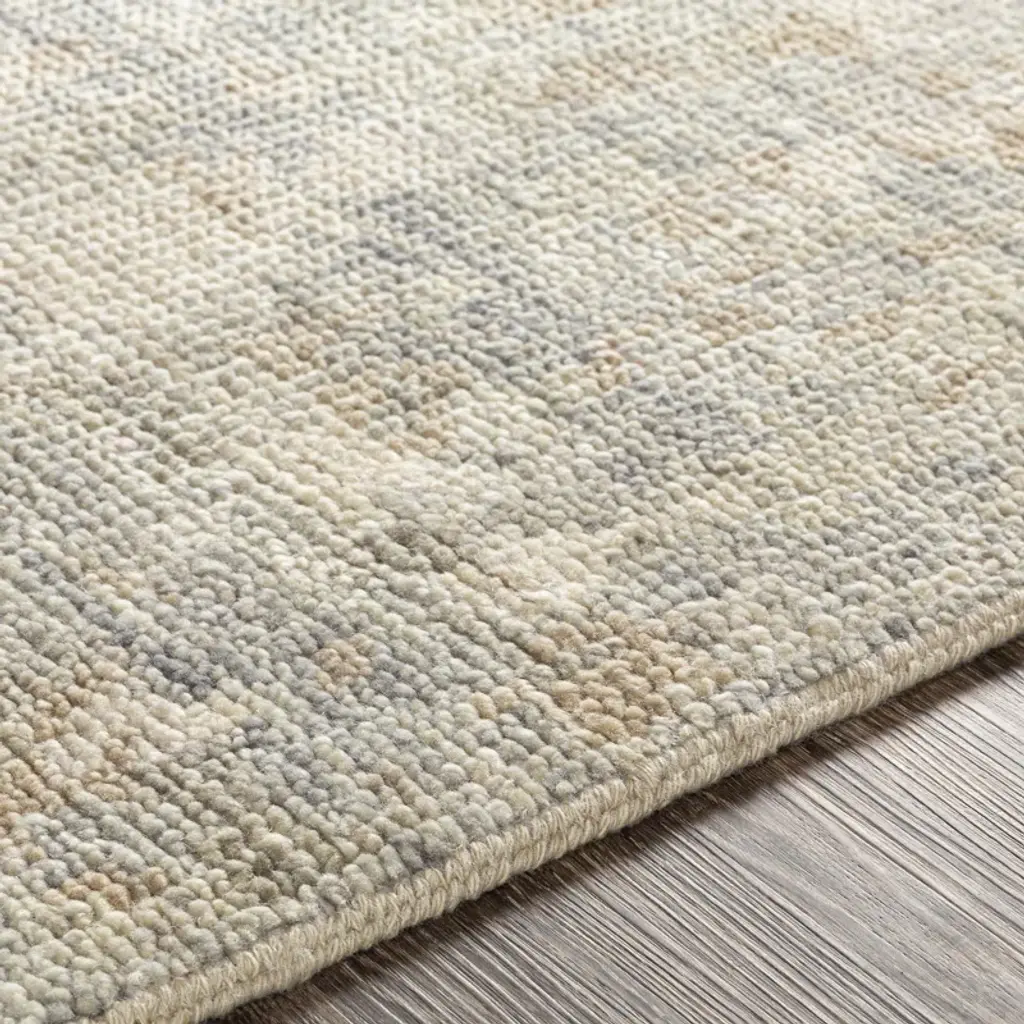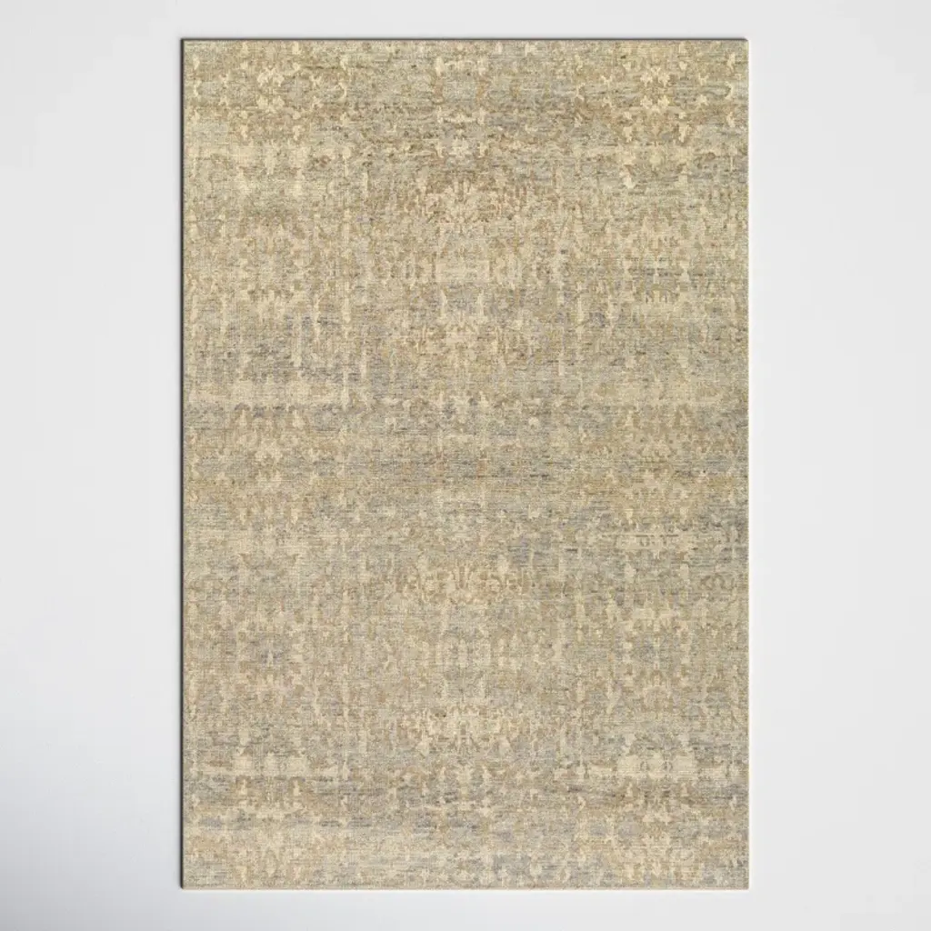 This hand-knotted area rug has a simple design that helps to breathe new life into your space without distracting from your existing decor style or already-established color palette. It's handmade in India from wool with primary hues of charcoal, tan, and light beige. Intentional distressing gives it that lived-in look right out of the box. Thanks to the low 0.2" pile height, it's a great choice for high traffic areas. We recommend adding a rug pad underneath (sold separately) to help reduce shifting and sliding and keep your new rug in just the right spot.