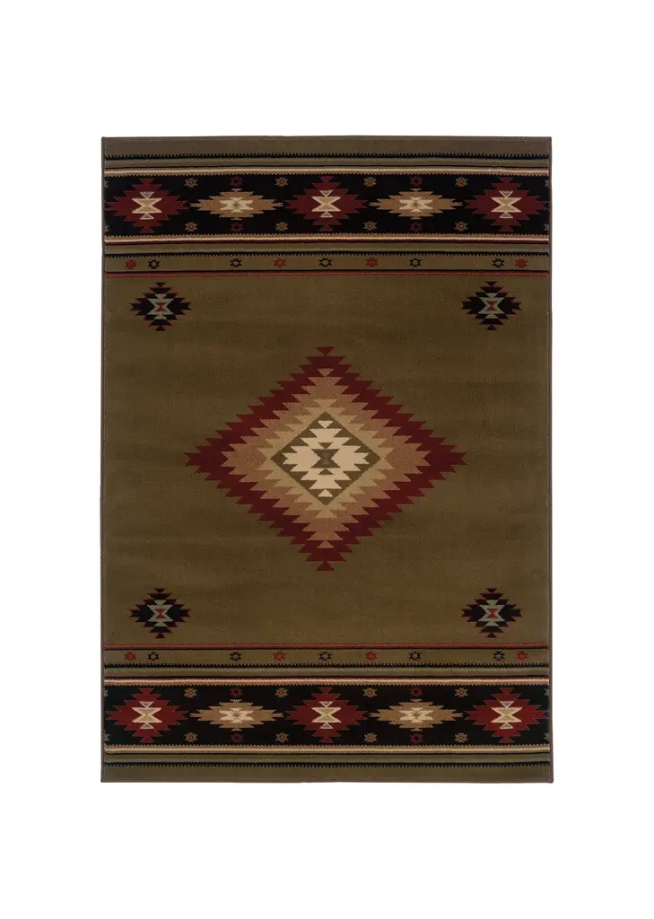Affordable elegance at its best, Hudson pairs sophistication and tradition with casual designs in modern colorways. Machine woven of heat-set polypropylene, Hudson is rich in style and value. This line covers a wide spectrum of design aesthetics to perfectly suit unique tastes with shades of true red, pure ivory and organic hues of green, blue, and terra cotta.Collection: Hudson HUD 087J1Type: Indoor RugOrigin: United StatesMaterials: PolypropyleneBacking Material: Woven PolypropyleneWeave: Power-LoomedConstruction: Machine madePile Type: Cut PileColor Combo: Green/RedColor List: Green, RedStyle: Southwestern Cabin/Lodge TribalPattern: Southwest/LodgeStain Resistant: YesBacking: NoFringe: NoPile Height: 0.43Care: Regular vacuuming without the beater bar helps rug remain attractive and serviceable; clean spills immediately by blotting with clean sponge or cloth with mild detergent; periodic professional cleaning is recommended The use of a rug pad is recommended; initial creasing is normal, and these will generally fall out within a few days to a week; tightly reversing rolling the rug (pile side out) and leaving in warm area for several hours will aid in the removal of creases or lingering fold marks as well
