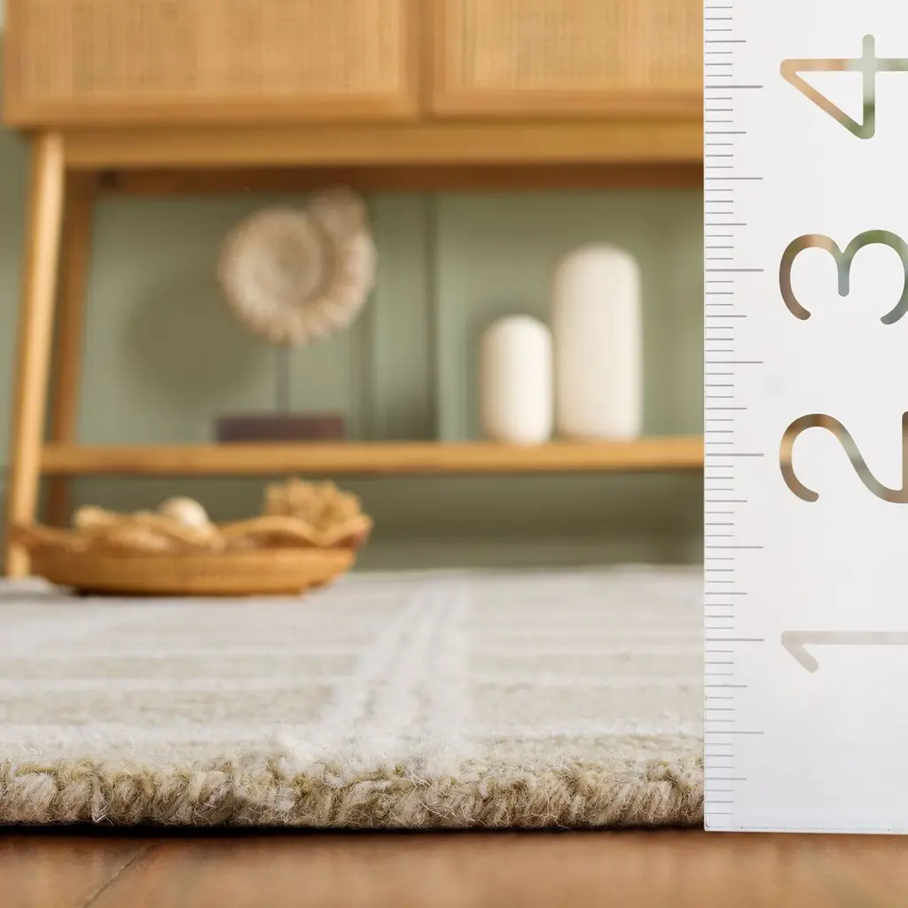 Exquisite in design and pleasantly comfortable, our Sage/Ivory Small Rectangle Area Rug adds a touch of elegance to any room. Measured at 4' X 6' and with a height of 3/8", this rug is sizable enough to accent a seating area yet compact enough to avoid crowding your floor space. It balances the warm hues of sage and ivory perfectly, creating a harmonious play of colors that soothes the eyes. Hand-tufted in India with utmost care, this stellar piece employs a blend of wool and cotton, guaranteeing durability as well as softness underfoot. This magnificent rug integrates effortlessly with many decor styles and color schemes. Own this Sage/Ivory Small Rectangle Area Rug today and enjoy premium comfort and design, straight from the heart of India.