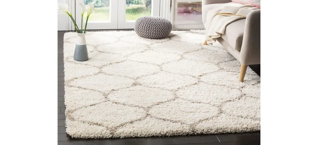 This luxurious Hudson Shag displays classic tile designs set in a thick, plush shag pile.