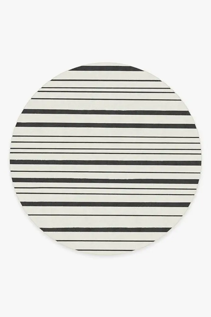 The classic motif of our Hudson Stripe Black rug takes a familiar but unexpected turn with bold and fine lines of charcoal grey on sand.
