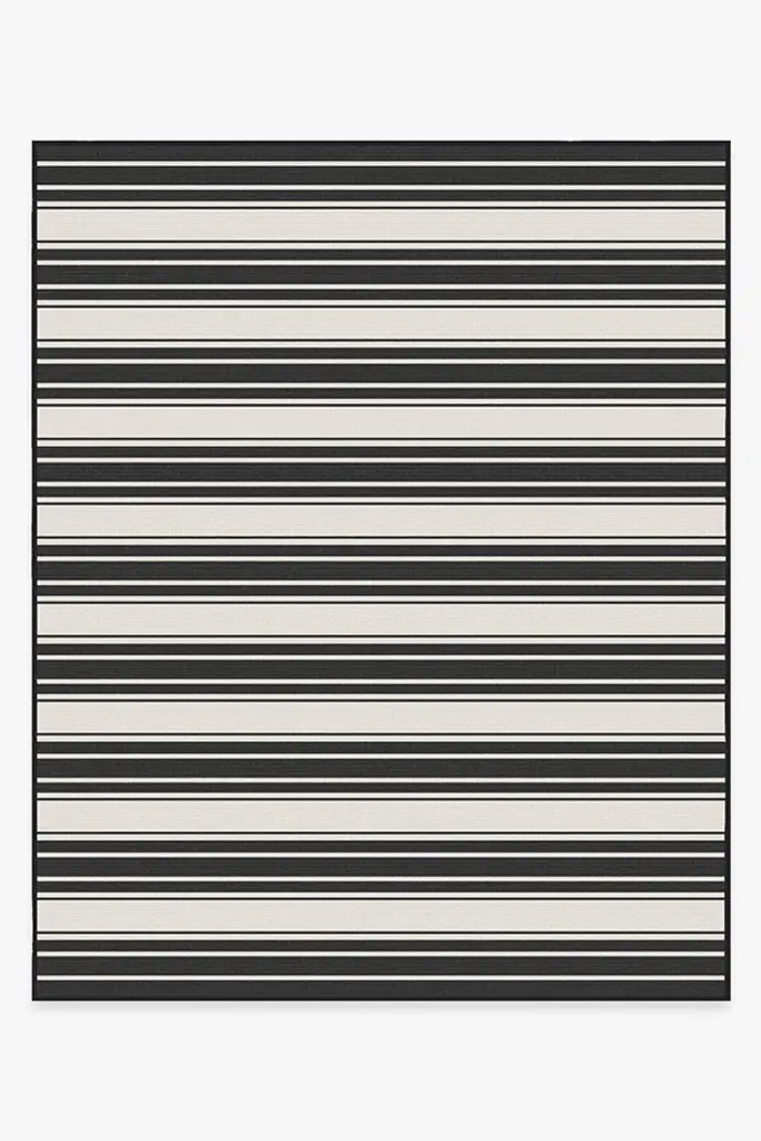 The classic motif of our Hudson Stripe Black rug takes a familiar but unexpected turn with bold and fine lines of charcoal grey on sand.