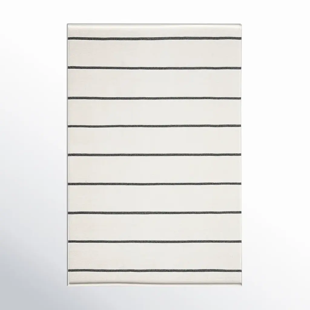 The classic motif of our Hudson Stripe Black rug takes a familiar but unexpected turn with bold and fine lines of charcoal grey on sand.
