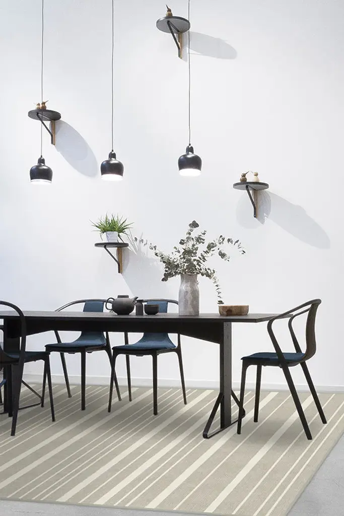 Our classic Hudson Stripe Stone rug is designed with a modern style of bold and fine lines colored in grey and sand.