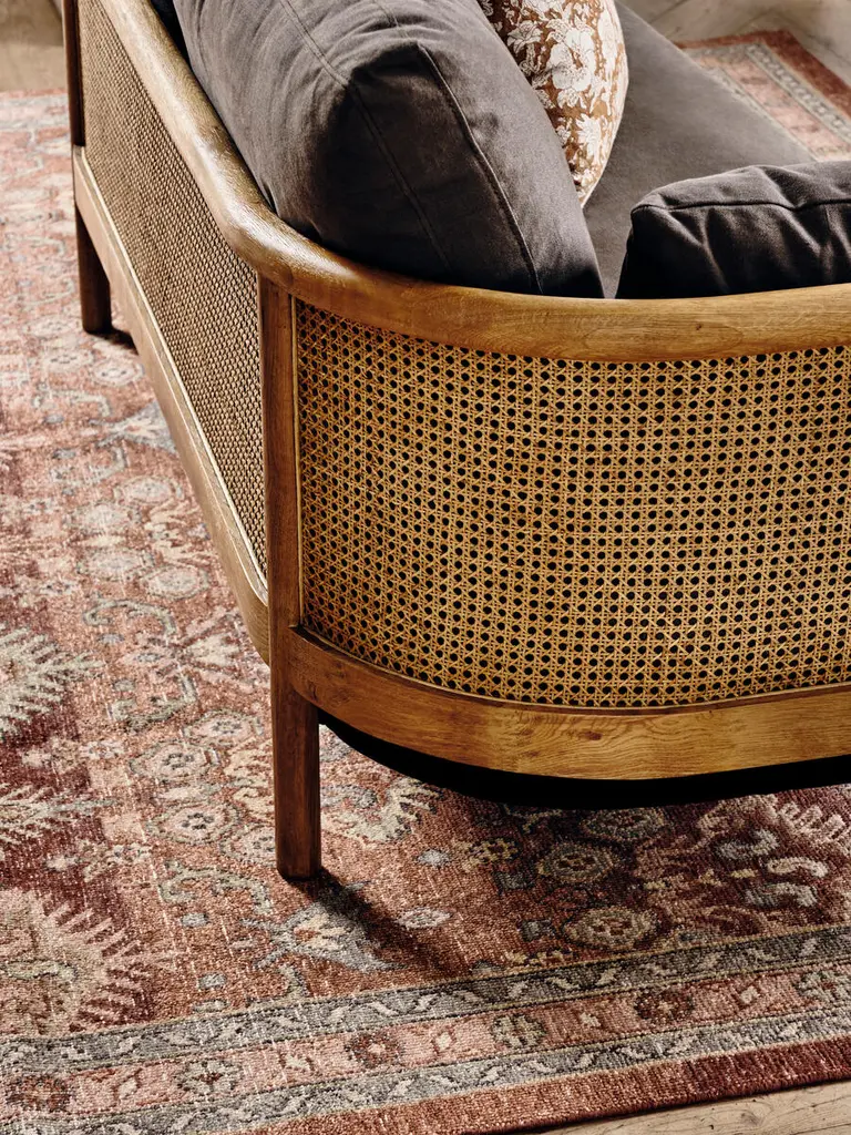 Inspired by the love-worn, Persian rugs at Babington House, the Hugo rug is made with a wool pile and hand-knotted in India by skilled artisans. A vintage-style design in soft tones complements a variety of interiors and textures, including linen and velvet.