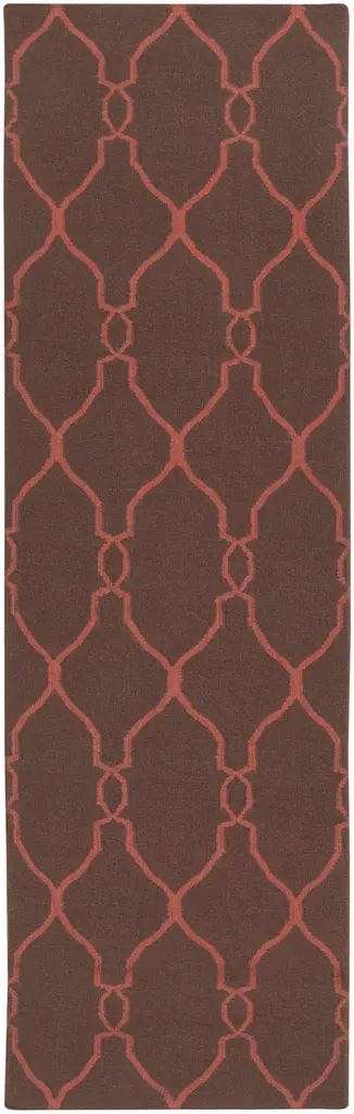 Collection: Humarock Colors: Burgundy, Medium Brown Construction: Hand Woven Material: 100% Wool Pile: No Pile Styles: Transitional Made In: India Thickness: 0.16" Price Range: $$$$$ (Most Affordable)
