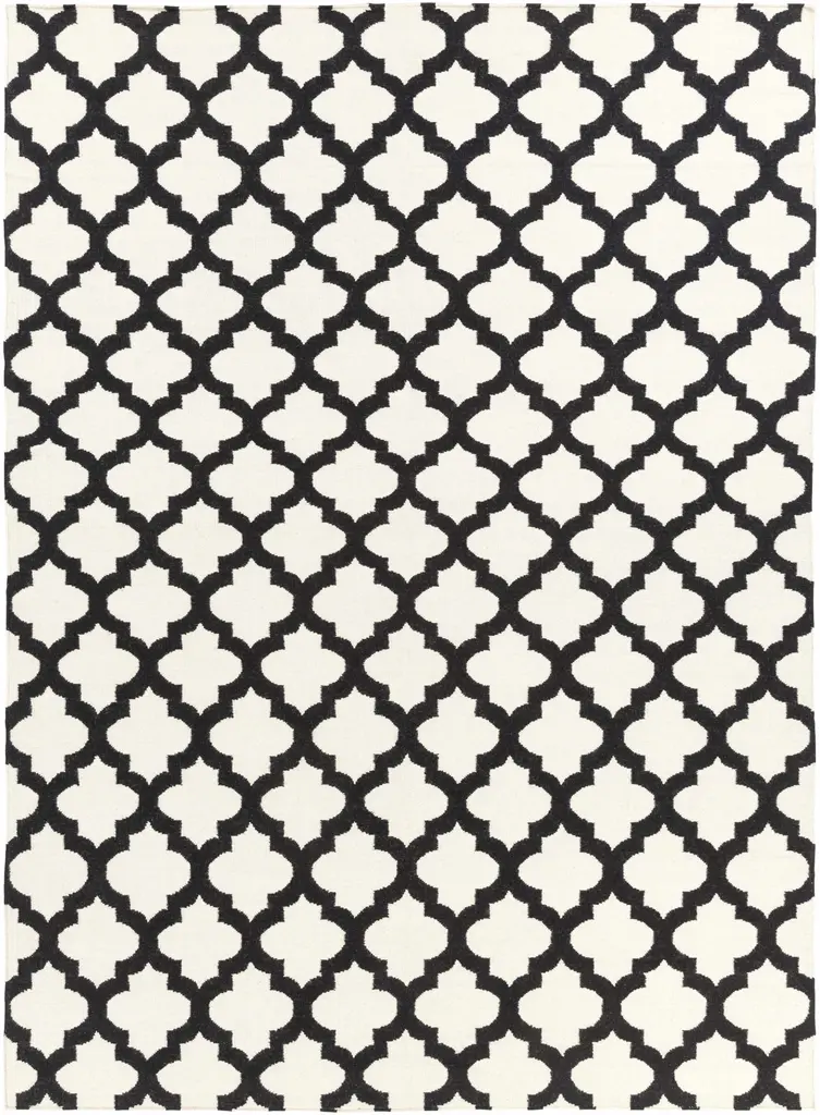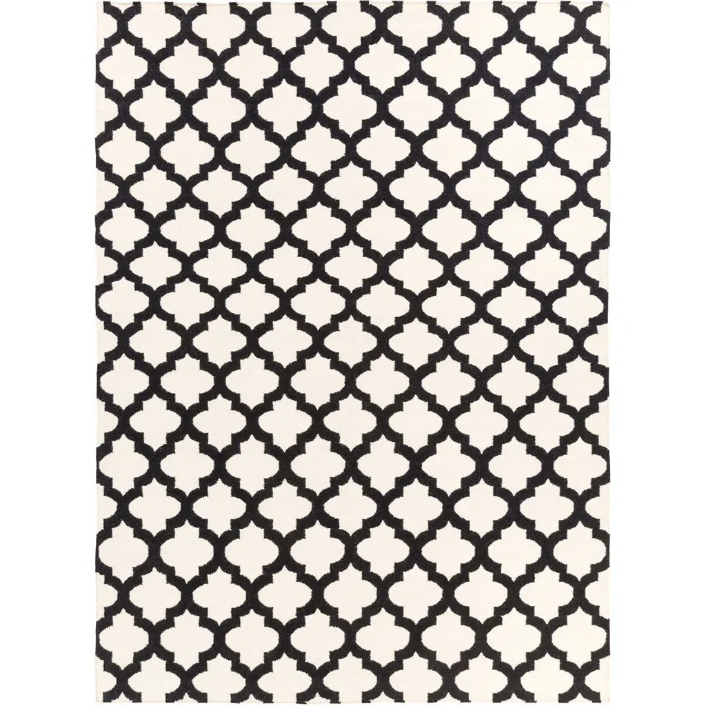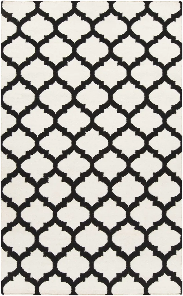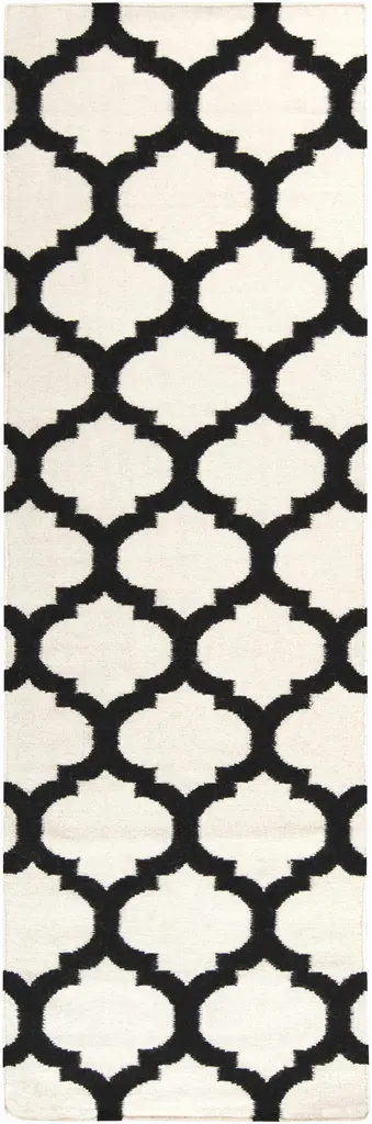 Collection: Humeston Colors: Ivory, Black Construction: Hand Woven Material: 100% Wool Pile: Medium Pile Pile Height: 0.3" Styles: Transitional Made In: India Thickness: 0.16" Price Range: $$$$$ (Most Affordable)
