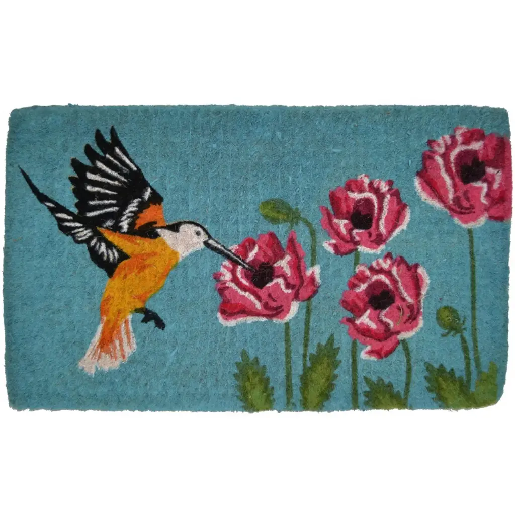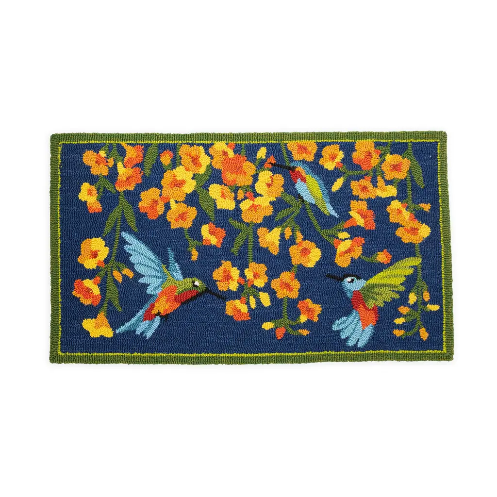 This whimsical, colorful garden mat features a flying hummingbird. It is fashioned of a hand-hooked polyester blend of weather-resistant fibers that are easy to clean and offer a combination of comfort, softness and durability. 80% polyester, 20% acrylic, polyester backing Hand-tufted For outdoor or indoor use Vacuum regularly; clean with a mild detergent and water, rinse and allow to dry thoroughly Add an outdoor rug pad (sold separately) to increase water drainage and prevent slipping Reducing exposure to rain and moisture will prolong the life of the mat Imported At Frontgate, our primary focus is quality. We guarantee that every product we sell will stand up to the supreme test – our customers' satisfaction. To learn more about our policies, visit our Shipping & Processing, Returns & Exchanges and Warranty & Price Guarantee pages.
