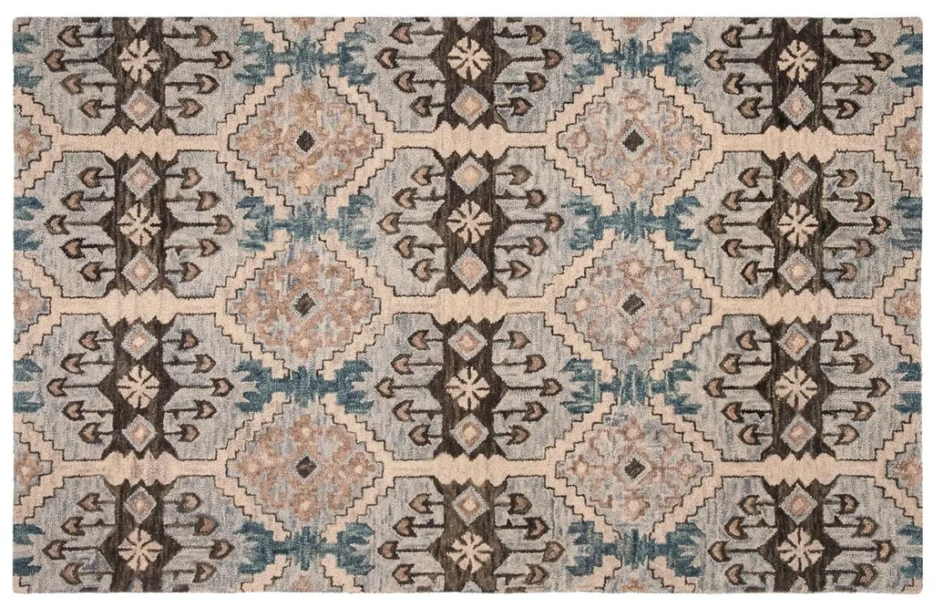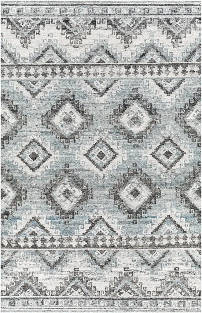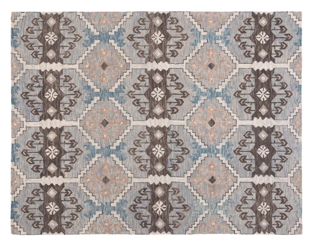Elevate your living space with the timeless elegance of our Hand Tufted Wool Area Rug, artfully crafted in the historic textile workshops of India. Measuring a luxurious 10 feet by 14 feet, this large rectangular rug showcases a harmonious blend of light blue and cream hues, imbued with a classic pattern that exudes a sense of heritage and sophistication. The intricate design features repeating geometric and floral motifs, a testament to the skilled artisans who have drawn from age-old techniques to create a piece that's both traditional and contemporary. This rug's modest pile height of 1/4 inch offers a smooth underfoot with just enough texture to add visual interest without overwhelming your decor. Made exclusively from high-quality wool, this rug provides natural durability and comfort, ensuring a soft touch and an enduring presence in your home for years to come. Whether it graces your living room, dining area, or grand entrance, this piece will become an anchor of style and luxury in your abode. Add this hand-tufted masterpiece to your collection and invest in the beauty of Indian craftsmanship, a blend of history, art, and functionality that will be cherished and admired by all who encounter it.