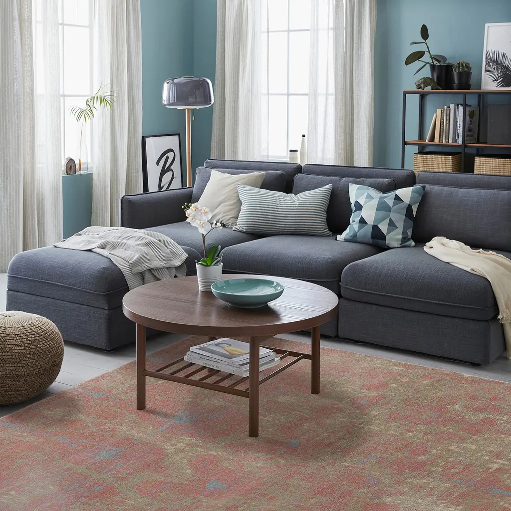 HVIDING Rug, low pile - red/gray 7 ' 10 "x9 ' 10 ". Ideal for high traffic areas like kitchens and hallways since the rug is easy to vacuum. Durable, stain resistant and easy to care for since the rug is made of synthetic fibers. The pattern looks faded and worn, which gives the rug a vintage look.