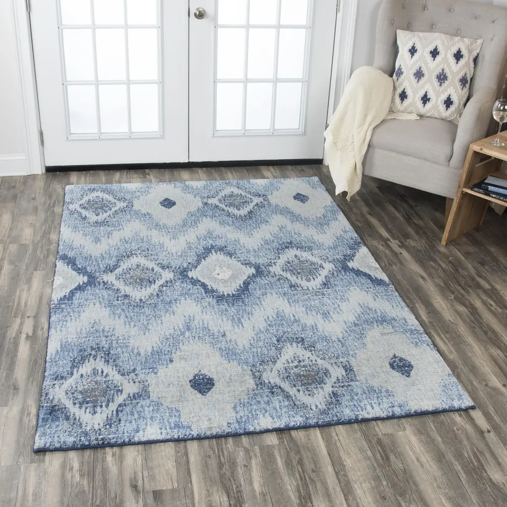 Hybrid 100% New Zealand Wool Chevron/ikat Rug - Blue / 3' X 5'