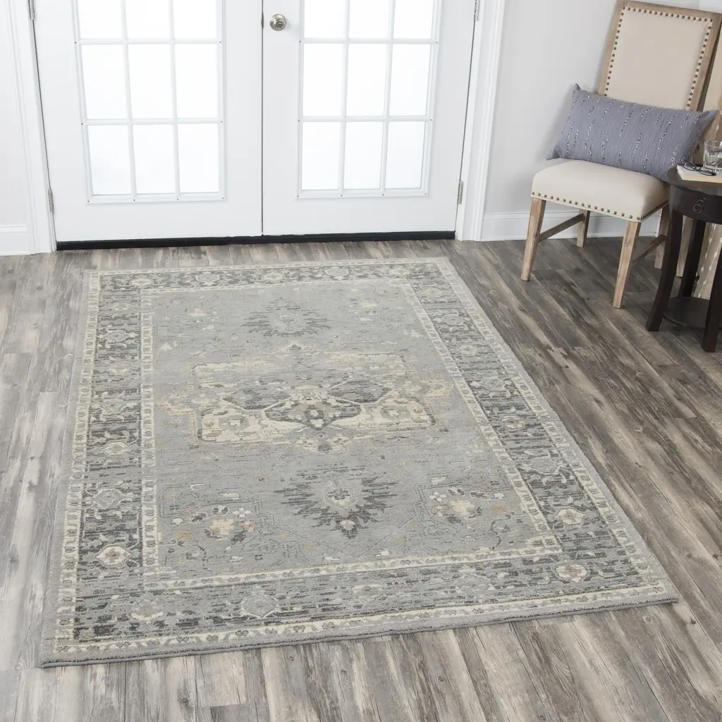 Place this gorgeous Gossamer rug in your home to make a stunning centerpiece in your living room or dining room. A large medallion in shades of Gray, Tan, and Beige is surrounded by a border and bound edge that give this 100-percent wool rug a complete look. This rustic, transitional rug is the perfect finishing touch for any room. This power-loomed rug is hand-washed and hand-finished to create a timeless look.