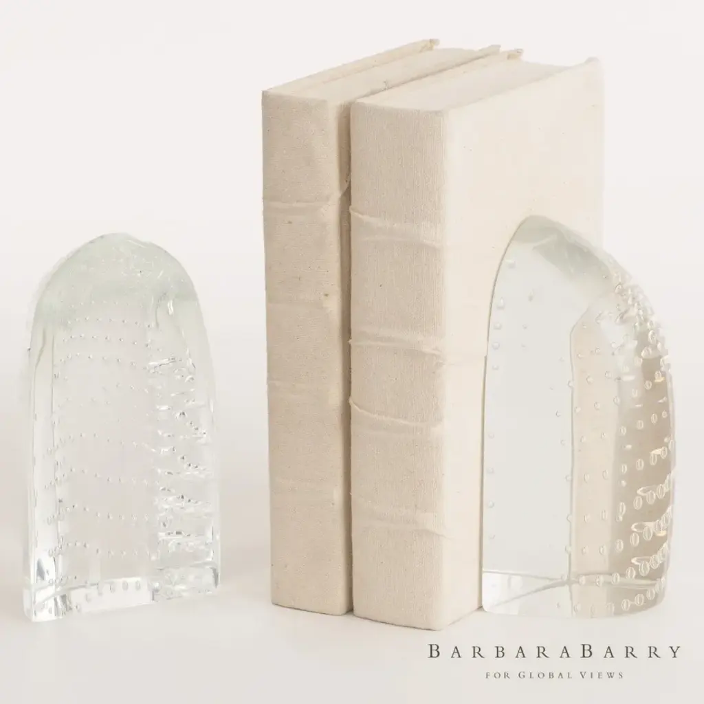 Floating iceberg bookends in frosted and polished glass. Part of the Chalet Collection. From a fashion forward perspective, Global Views offers accessories, furniture, statement lighting, and an assortment of rugs and mirrors to add beauty and joy to your home.