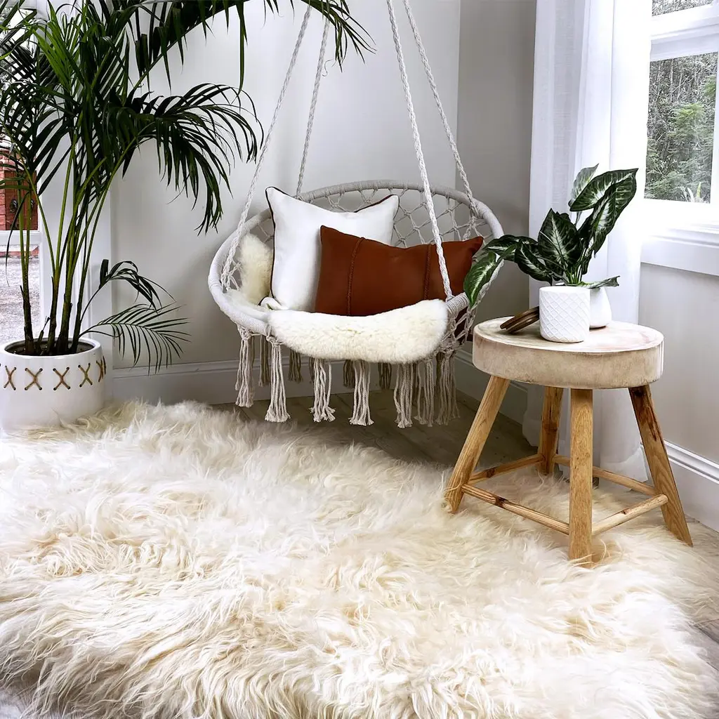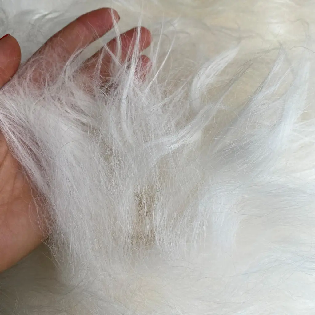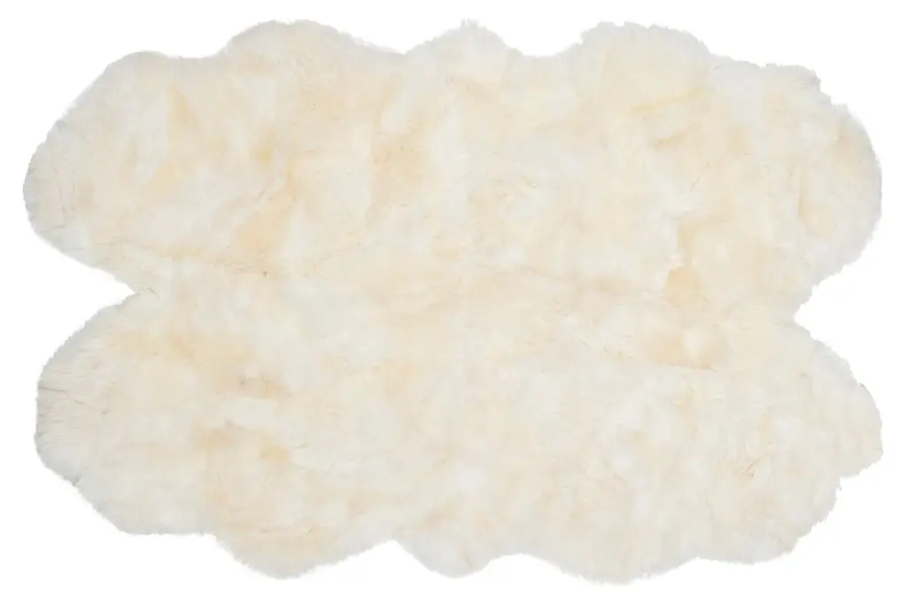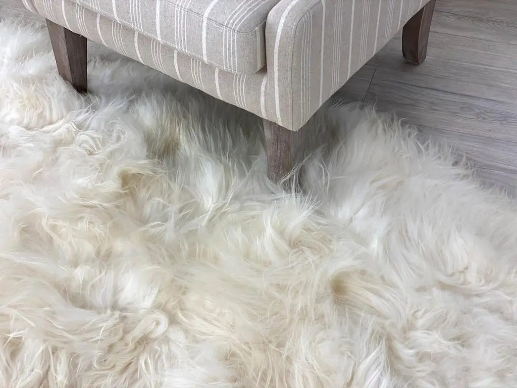 This Icelandic sheepskin rug is sustainable, natural living at its finest. This natural white sheepskin rug is handcrafted from the highest quality long wool Icelandic sheepskin creating an extraordinary shaggy area rug with a wool pile range from 8 to 20cm ( 4 to 8 inches).The enchanting sheepskin rug is un-dyed preserving the organic and natural white wool color, allowing its natural beauty of whites and creamy ivory tones to come through the rug.Each rug is individually crafted in Australia, from Icelandic sheepskin ethically sourced directly from Europe, using only natural by-products and eco-friendly processing practices. We believe in styling without the use of harsh and toxic chemicals that are damaging to the environment and humans, making them safer and healthier inside the home for everyone to enjoy.Each sheepskin shaggy rug is handcrafted using individual sheepskins forming each rug with an organic shape from each sheepskin used. Every Icelandic sheepskin rug will be unique and feature its own characteristics and differences as no two sheepskins are ever identical in shape, color tone, texture, or wool pile. Made in Australia by eluxury home with expertise and honored time craftsmanship, this Icelandic sheepskin rug design is available in a range of long wool sheepskin colors, view image gallery for the color selection with a customized make to size.Features:Handcrafted from genuine Icelandic sheepskinsColor: Natural WhiteCustom made in other colors and sizesDimensions: 100 cm width x 210 cm approximateLong and shaggy wool pile 5-8 inches / 10 -20cmIndividually handcrafted in AustraliaNatural by-product and eco-friendly sheepskinsCooling and warming propertiesCaring for this product:Spot clean only with gentle wool wash and lukewarm waterDo not submerge into water or use any chemical agents or detergentsDo not apply heatDry clean onlyBrush with a pet brushvacuum on low settingshake outside and allow to air in the shadeloose wool fibers may be found caused by the production processNatural productThis is a natural product therefore no two sheepskins are ever alike, therefore variation in markings, color tone, texture, wool length, wool density are all classified as natural characteristics. SamplesWe understand how difficult it is to not have the ability to touch and feel.