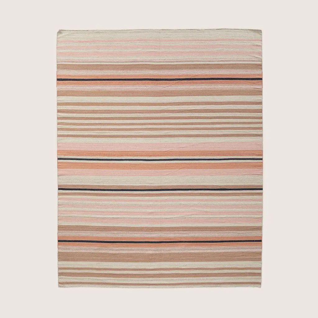 Charm never goes out of style. In a joyful palette of flatwoven stripes, this RWS-certified wool-and-cotton rug layers warmth and cheer into any room. It’s feel-good flooring.