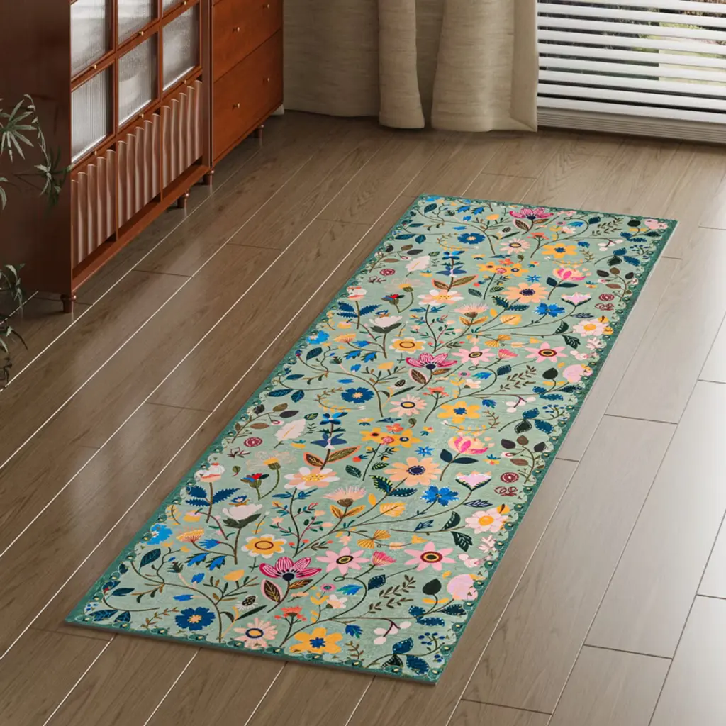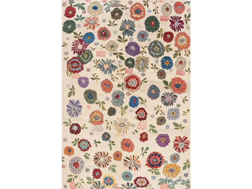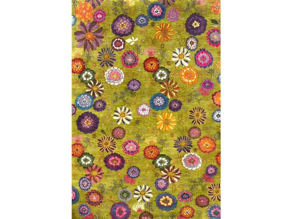 IKEBANA KYOTO 2 is a rectangular wool rug.Zollanvari Super Fine Gabbeh.Zollanvari Studio’s Ikebana Kyoto creations – a design that looks East to Japan and celebrates colour, nature, life – here takes an exotic turn. All things Japanese were all the rage in the late 19th century and greatly inspired and influenced the Art Nouveau and Art Deco movements. But the flow of inspiration worked both ways since these styles travelled back to Japan and in turn influenced meisen kimonos, which used abstract, floral and geometric designs in sophisticated colour combinations. Persian tribal art meets the art of Japanese textile design.