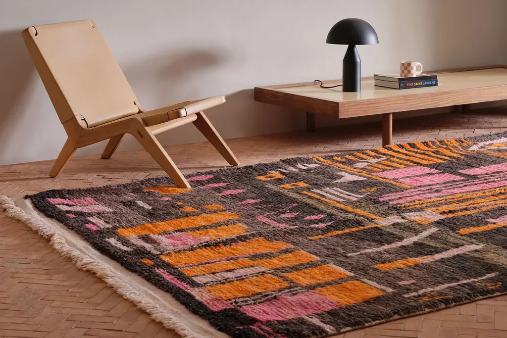 Our Moroccan pieces are each one-of-a-kind. Much of our collection was woven between 30 and 100 years ago, and curated by us. Other rugs in our collection are fresh off the loom and made with traditional techniques. Moroccan rugs don’t come with a key. As with any painting or poem, their motifs have many subjective interpretations. Originally made for personal use, these rugs took months to weave, documenting a shifting tide of events and emotions in the weaver’s life.