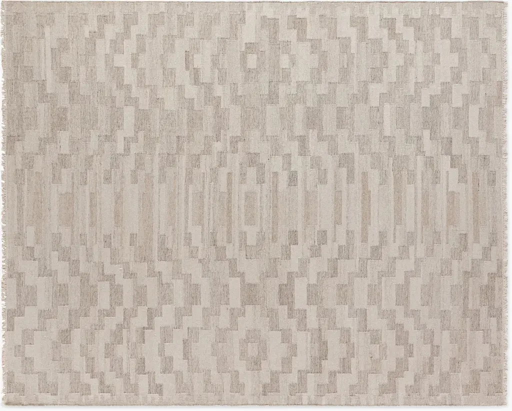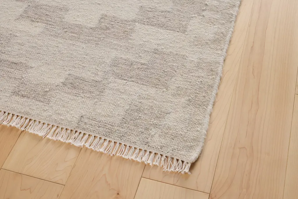 Flatweave rugs are designed for modern living. Having no pile keeps the aesthetic simple and sleek, while also making these rugs low maintenance. The DWR Rug Collection's Ilara Flatweave Rug (2023) adds warmth and visual interest to any space with overlapping grey tones in a stepped geometric pattern. Some shedding is natural; do not vacuum with a brush roller. Made in India.