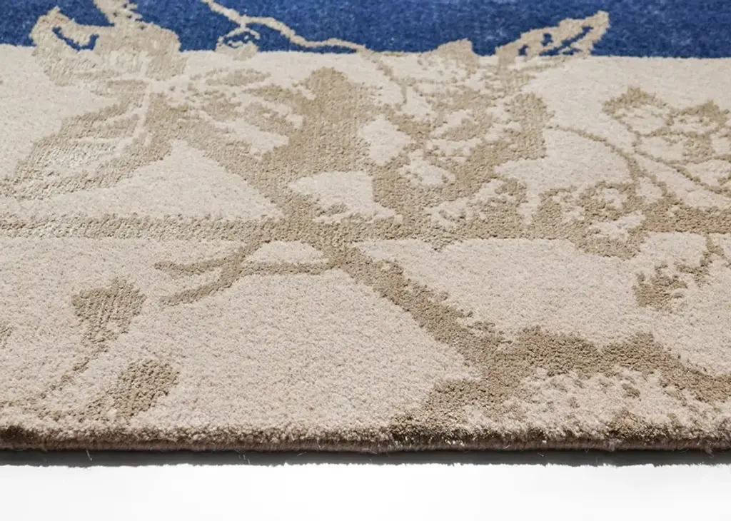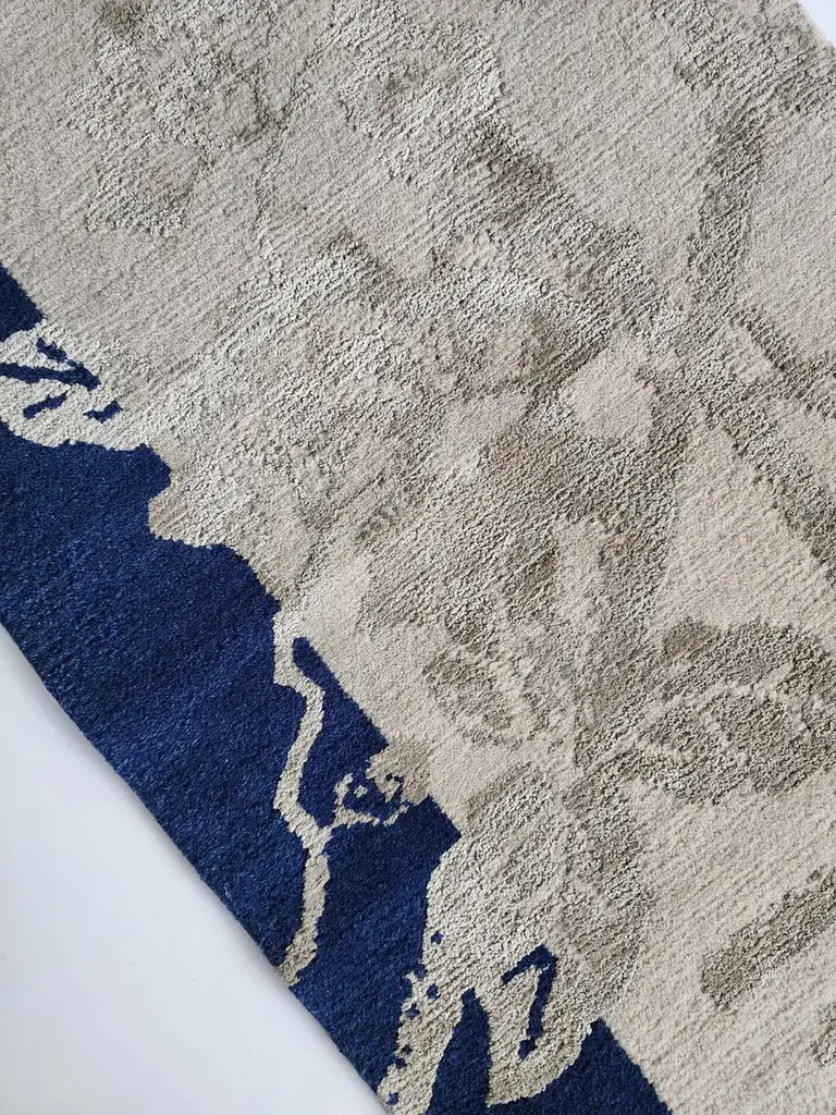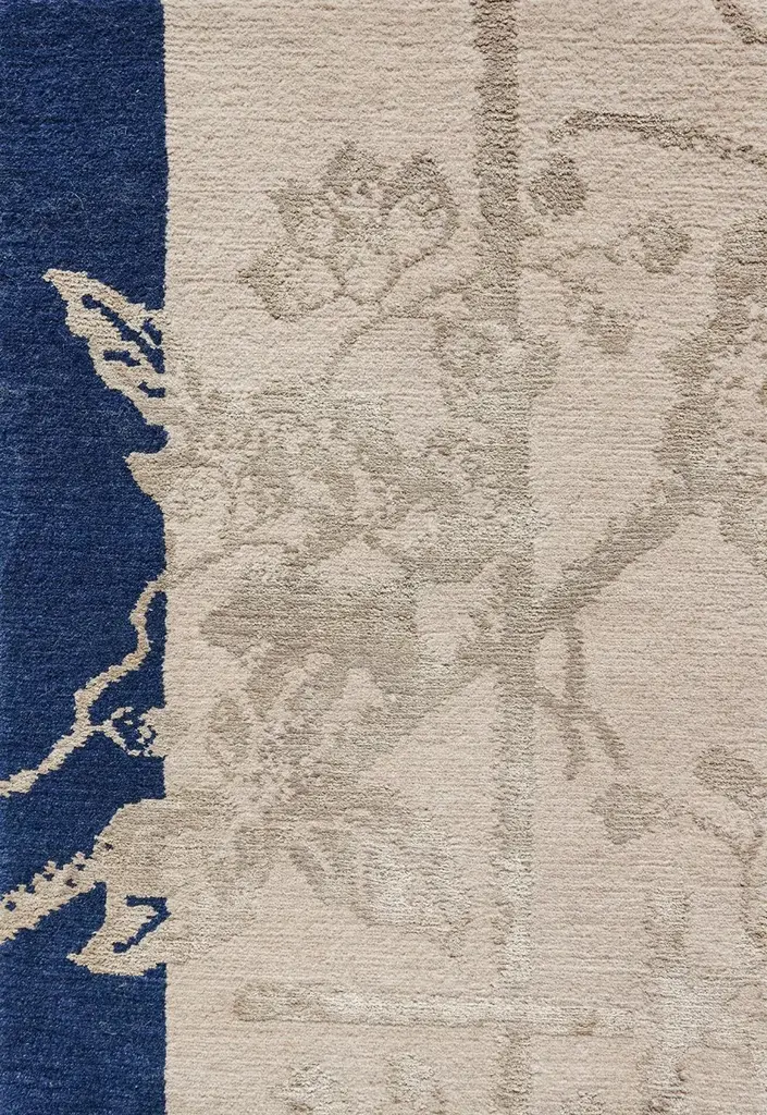 Material: Wool, SilkKnot Density: 100 knots/inch²Pile Height: 4mmTechnique: Hand-knottedCustom sizes and colors on requestThe Chinoiserie collection is composed of a series of intricate and elegant rugs inspired by the rich cultural heritage of China. The collection presents a range of stunning designs drawn on ancient myths and legends, steeped in symbolism, and beautifully crafted.We have expertly restored illustrations from the late Ming and early Qing dynasties and have brought these designs to life in various ways. Some rugs faithfully reproduce the original artwork, while others feature modern color schemes or have been reinterpreted into entirely new compositions.The materials used are of the highest quality, including 100% pure Chinese silk and New Zealand wool.The rug Floating Lotus River Blue, has a composition of 62% wool, 38% silk, a knot density of 100 knots/inch², and 4 mm pile height.
