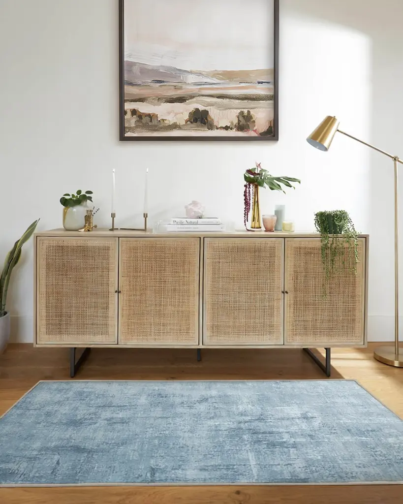 If you like abstract art, this one's for you. Our Impasto Slate Blue Rug features a unique texture, like thick paint on canvas, which is the highlight of a 17th century painting technique called impasto. Tinted in various hues of blue, grey, and white, this rug is a true work of art. Water-resistant, stain-resistant, and machine-washable.