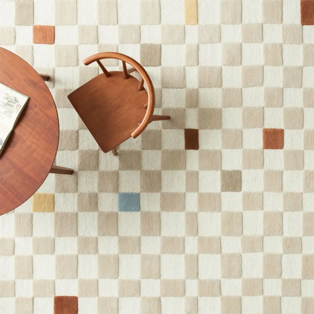 Imperfect Checkerboard Multicolor Wool Kids Area Rug 6'x9'
