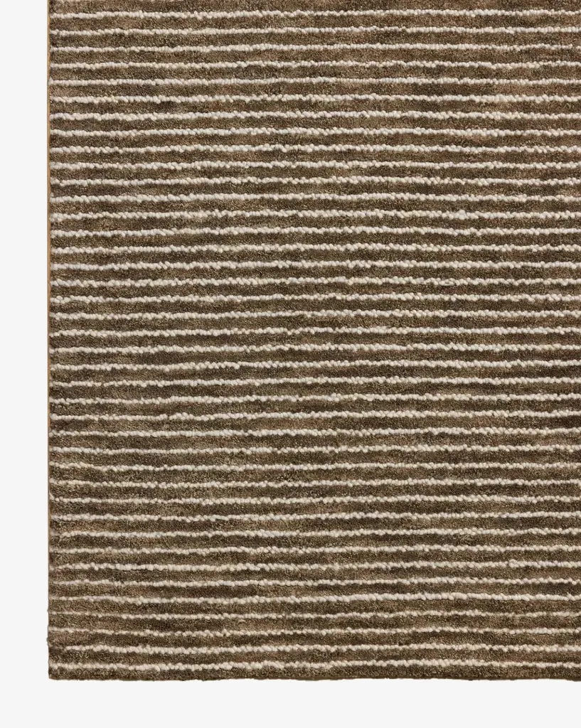 Crafted from 100% wool, the Inara Mocha Hand-Tufted Wool Rug features soft mocha and ivory stripes for a timeless, grounding feel. Its plush, hand-tufted construction adds warmth and texture to any space.