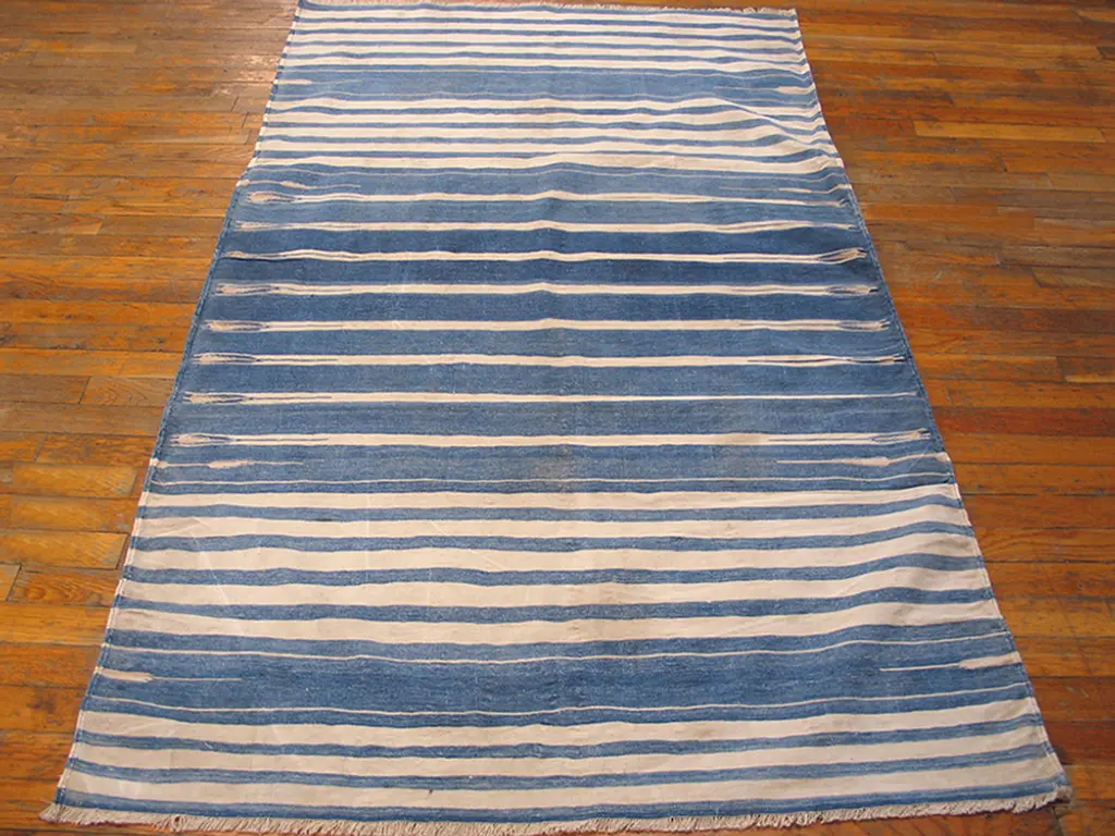 Indian Dhurrie Rug 6'3" x 3'8" hand knotted antique wool piece multicolor field