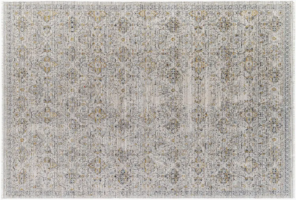 Variances in pile height and the integration of metallic threads throughout give this rug a depth, luster, and sophistication one doesn't always find in stain-resistant floor coverings like this one. A rug pad is recommended to help prevent slipping.