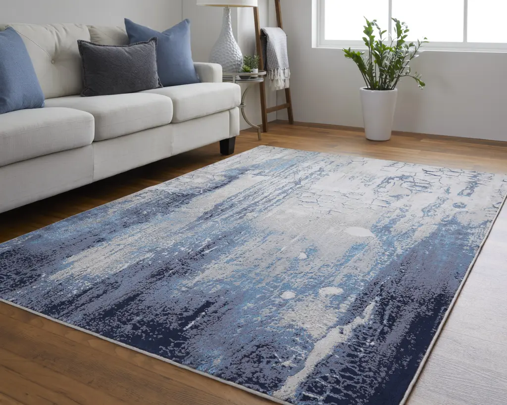 Indio Modern Abstract - Ivory/blue/black Area Rug - 6'7" X 9'6" Rectangle