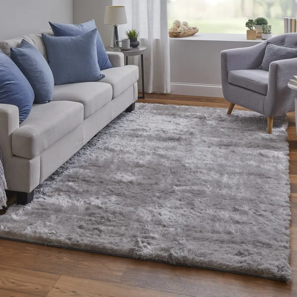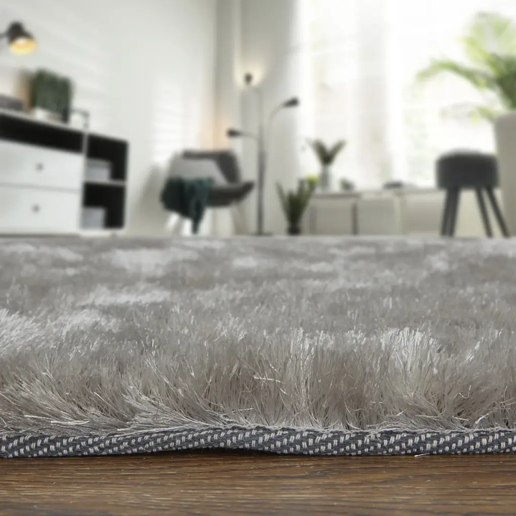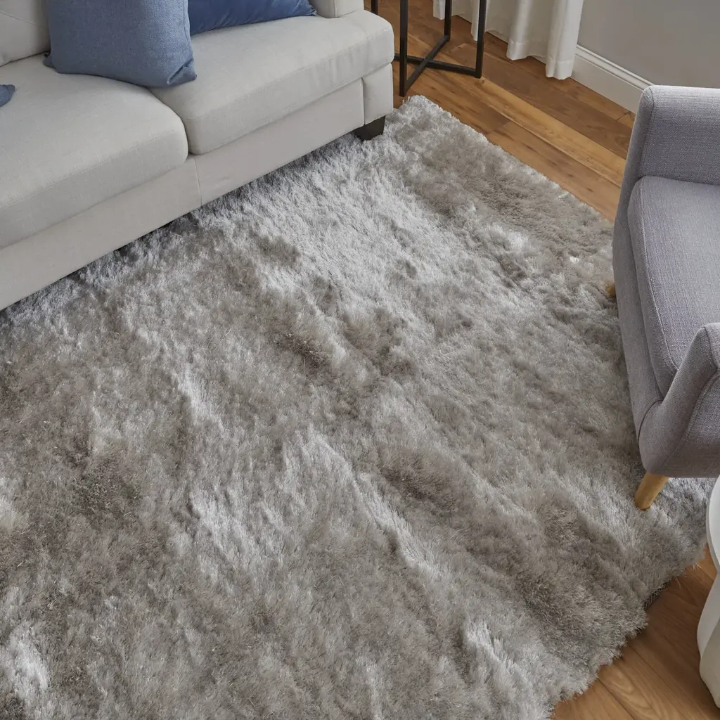 Collection: Indochine Colors: Gray, Silver Gray Construction: Hand Tufted Material: Face: 100%Polyester / Warp: Cotton Pile: High Pile Pile Height: 1.57" Styles: Contemporary,Luxury & Glam,Casual Backing: Cotton Made In: China Thickness: 1.57" Price Range: $$$$$ (Affordable)