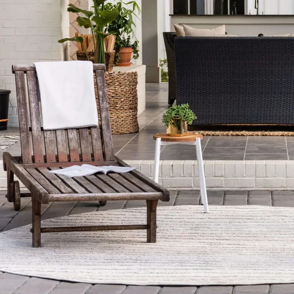 Claudia is a perfect addition for any outdoor oasis. Woven of polypropylene, the Claudia collection is weather resistant and power loomed to give the appearance of natural fibers. Designed with simple geometry, Claudia is simplicity in a beautiful package. If you prefer to stay inside or outside, Claudia is just the decor piece that you need.