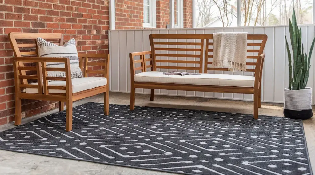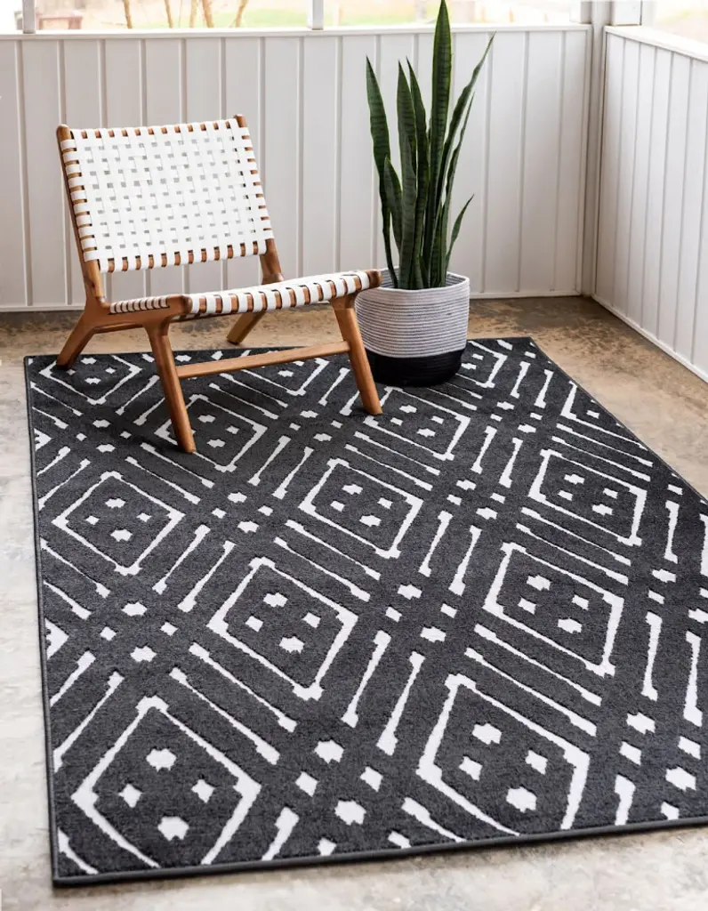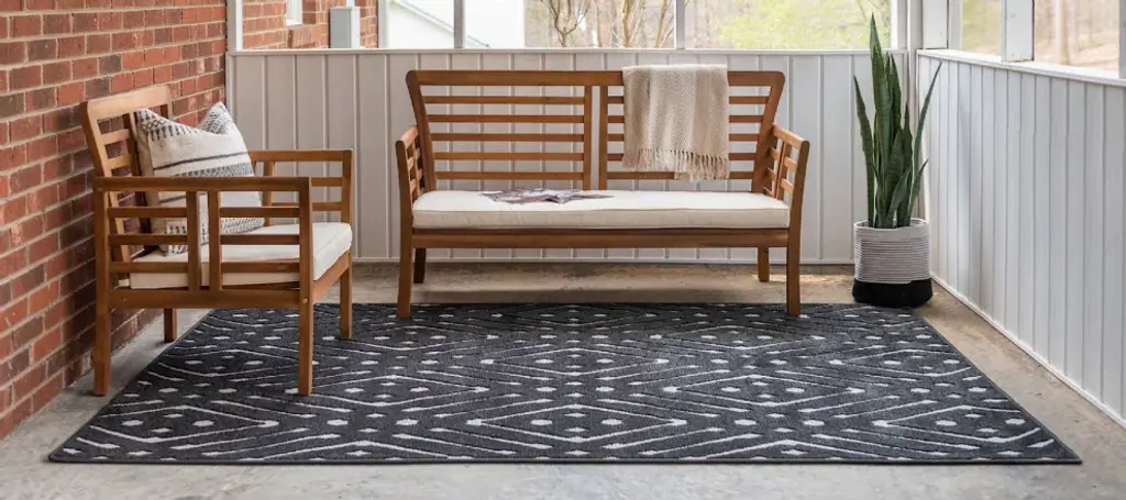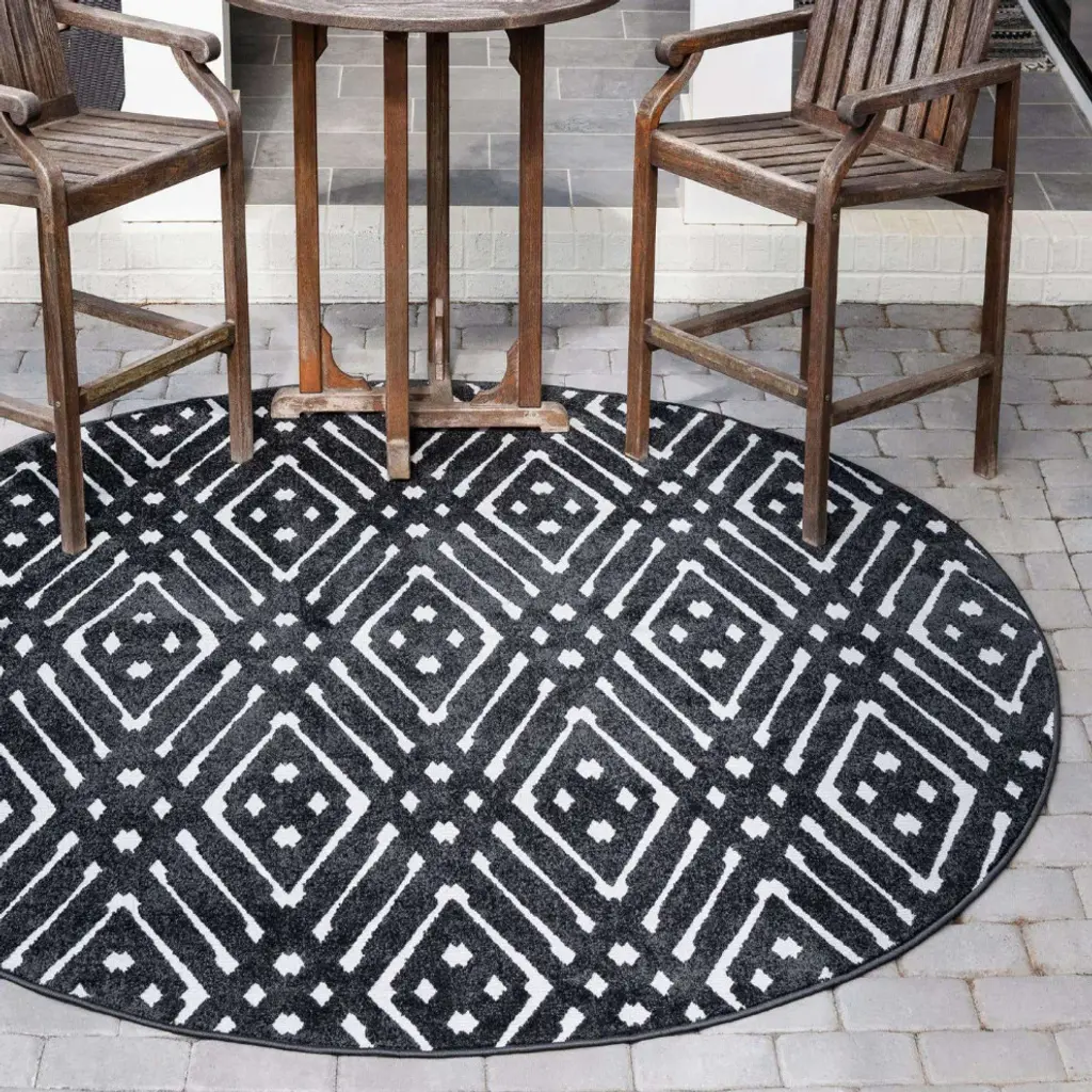 Claudia is a perfect addition for any outdoor oasis. Woven of polypropylene, the Claudia collection is weather resistant and power loomed to give the appearance of natural fibers. Designed with simple geometry, Claudia is simplicity in a beautiful package. If you prefer to stay inside or outside, Claudia is just the decor piece that you need.