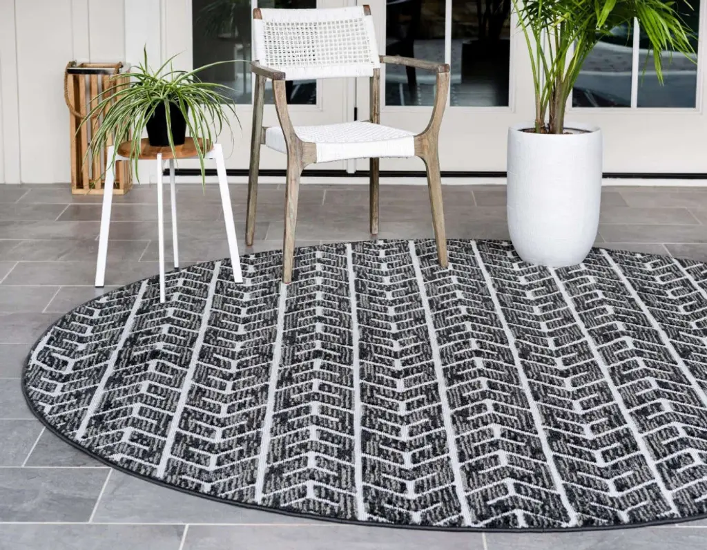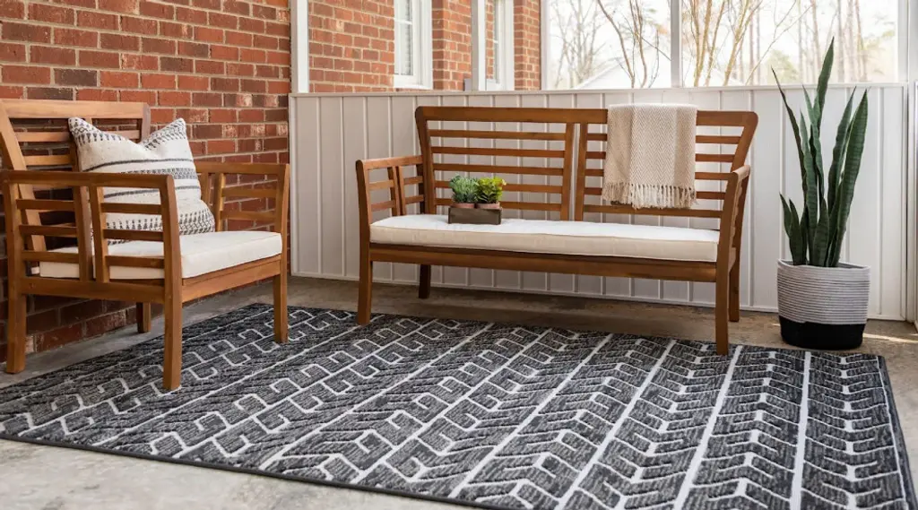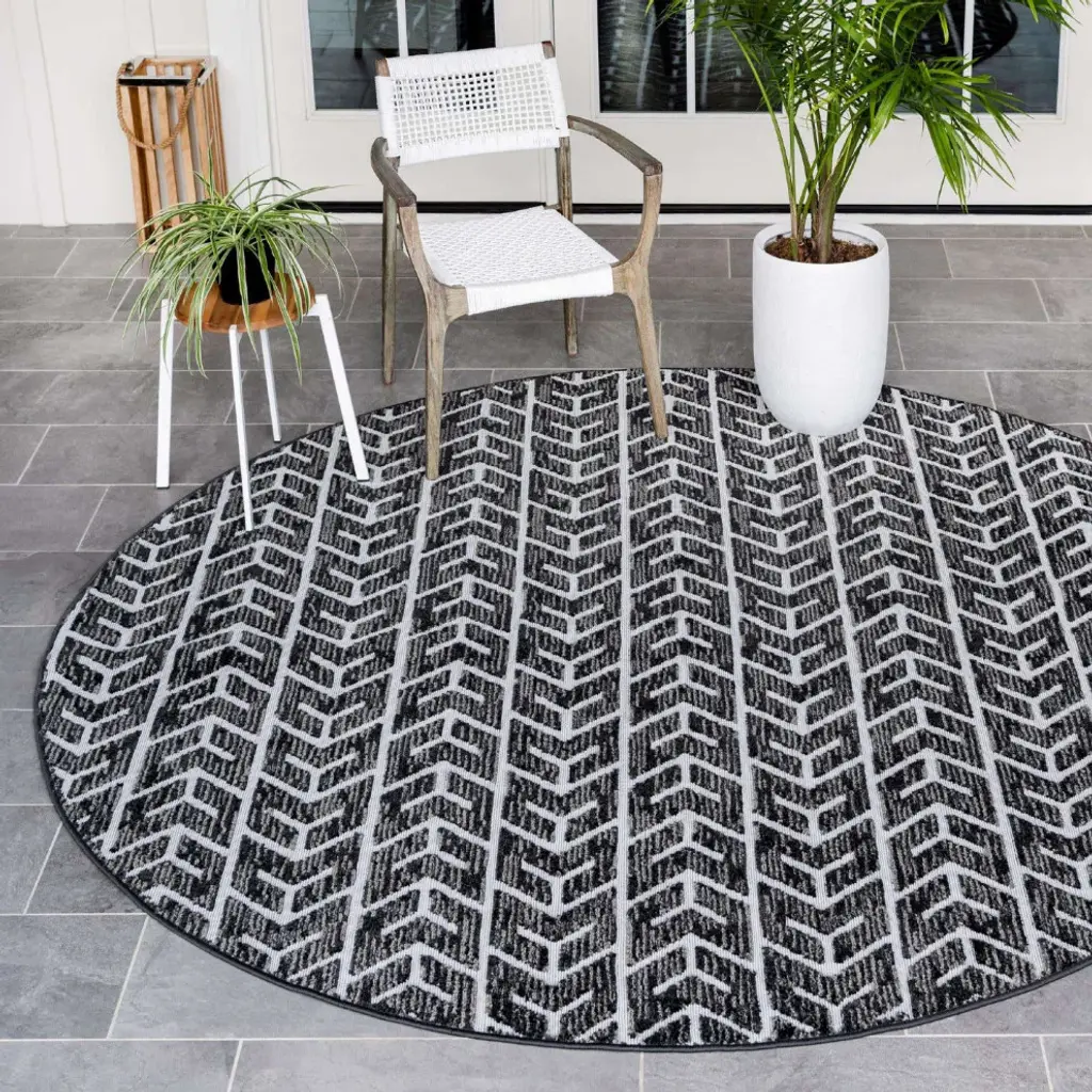 Claudia is a perfect addition for any outdoor oasis. Woven of polypropylene, the Claudia collection is weather resistant and power loomed to give the appearance of natural fibers. Designed with simple geometry, Claudia is simplicity in a beautiful package. If you prefer to stay inside or outside, Claudia is just the decor piece that you need.